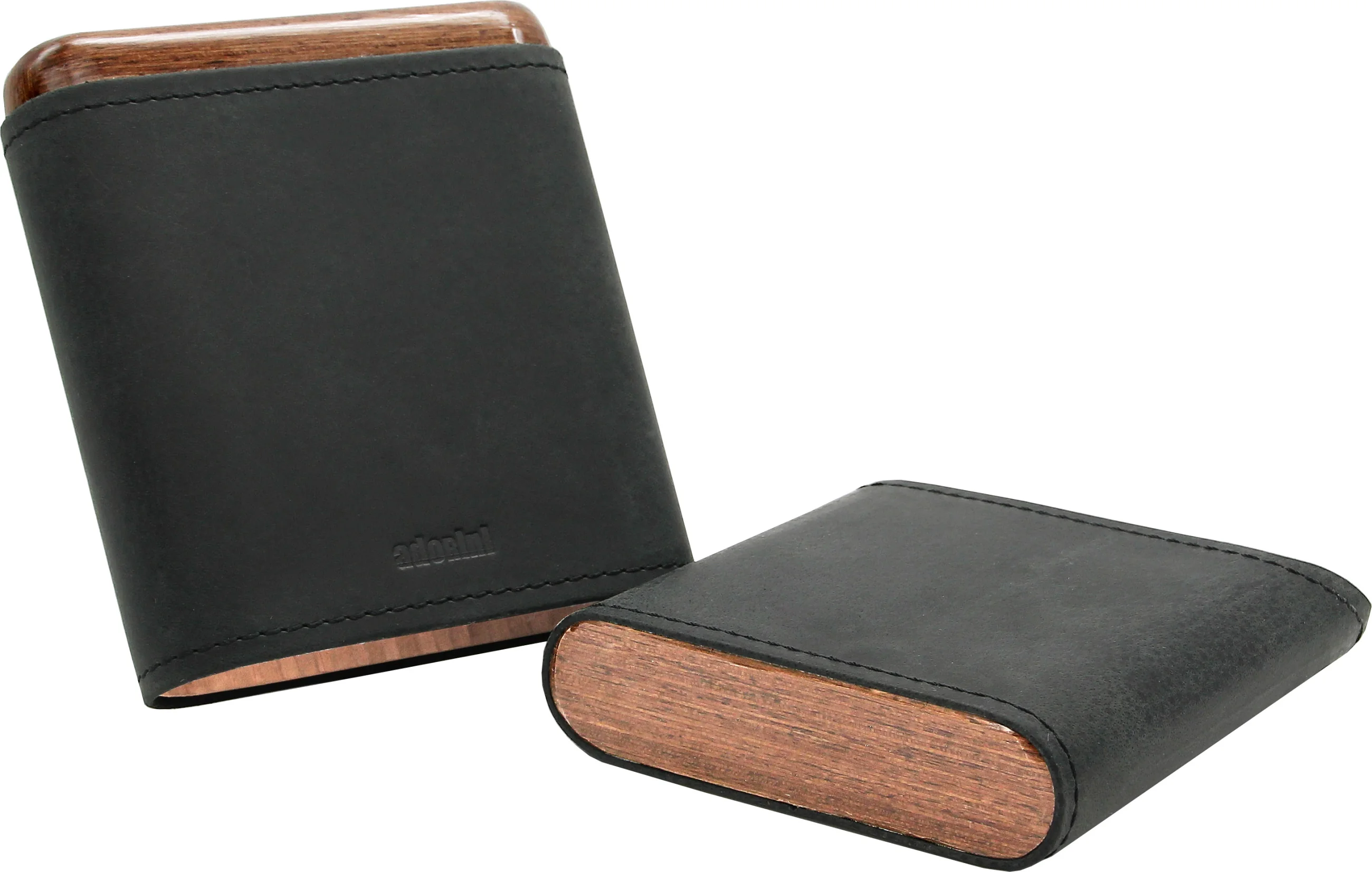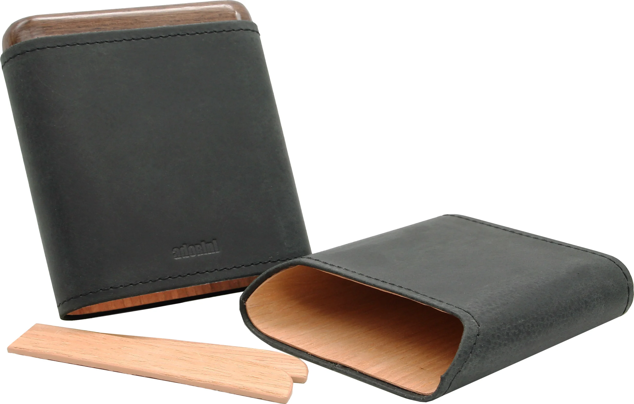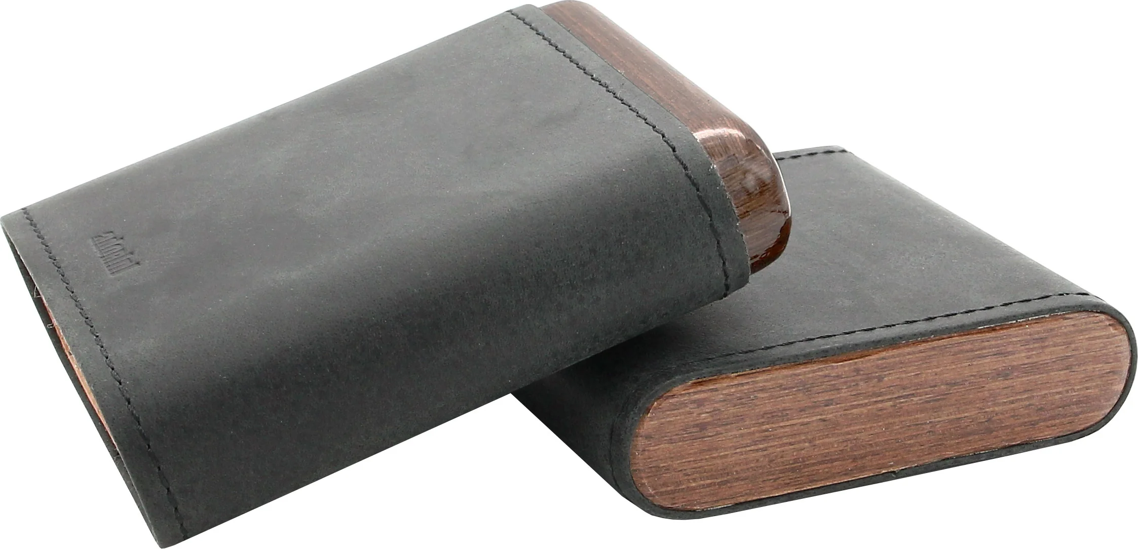 Adorini estojo de charuto preto em couro verdadeiro 3-5 charutos topo e base amadeirados