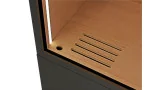 - O interior do umidificador de gabinete é feito de folheado de cedro e tem um segundo painel traseiro com circulação de ar.