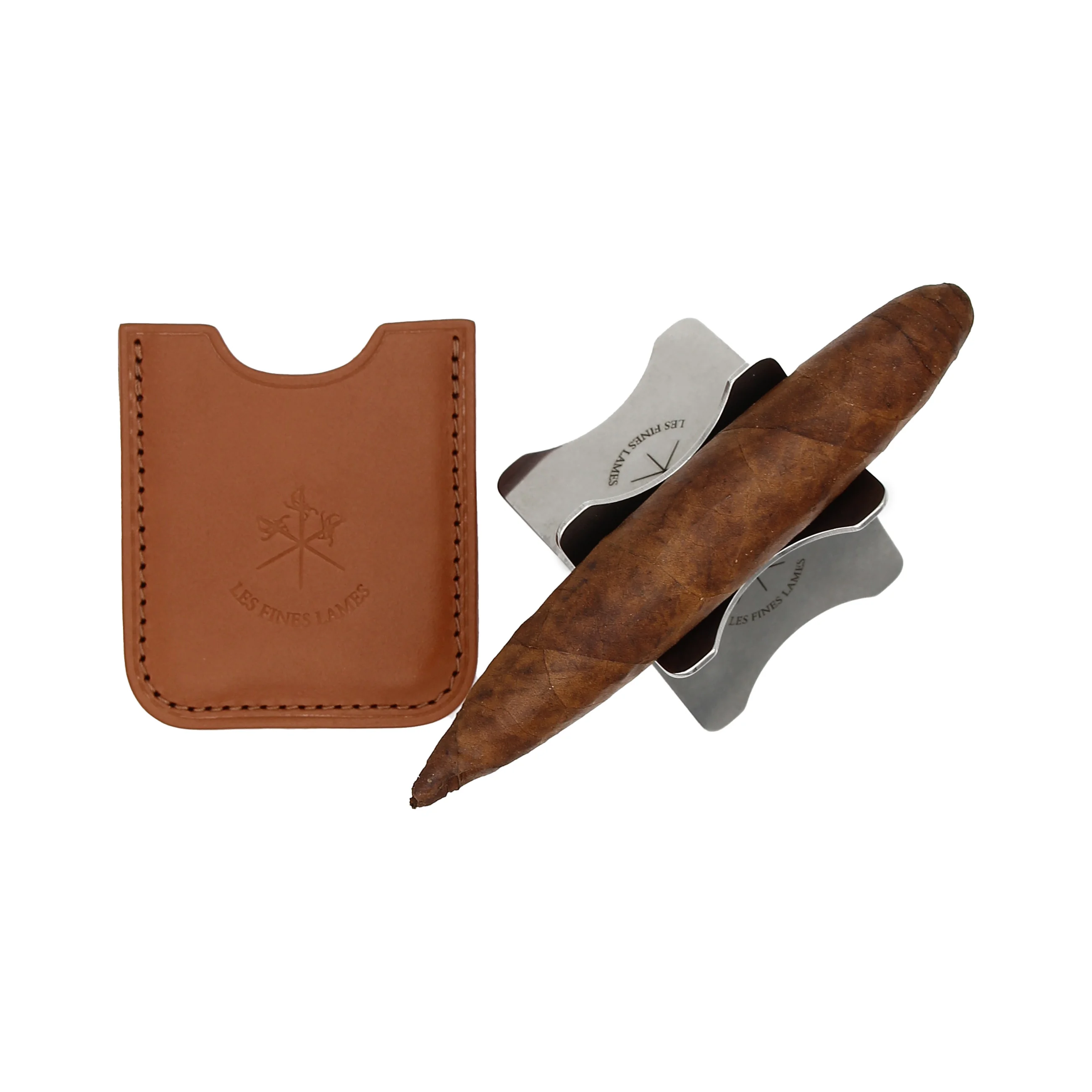 Bancada para charutos Les Fines Lames com estojo de couro bege