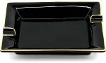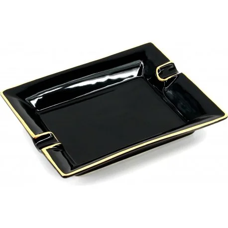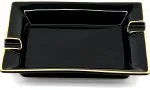 Cinzeiro para charutos Retangular em preto com detalhes pintados em ouro