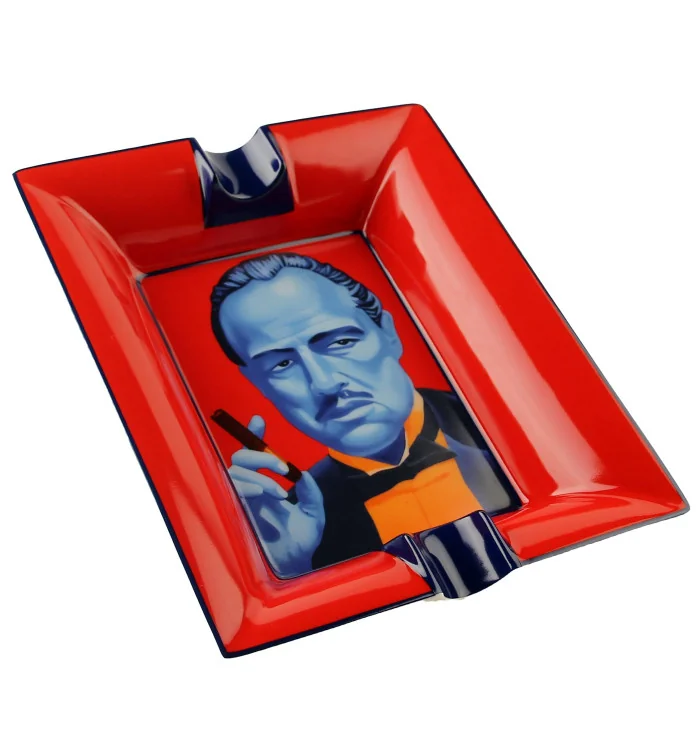 O cinzeiro **Siglo Marlon Brando** é um cinzeiro para charutos arrojado em vermelho e azul, com uma imagem icónica de Marlon Brando a segurar um charuto com um prazer inconfundível. Conhecido pela sua paixão por charutos, Brando personifica a arte de saborear um momento de descontração. Este cinzeiro é uma verdadeira peça de afirmação que chama a atenção onde quer que seja colocado.