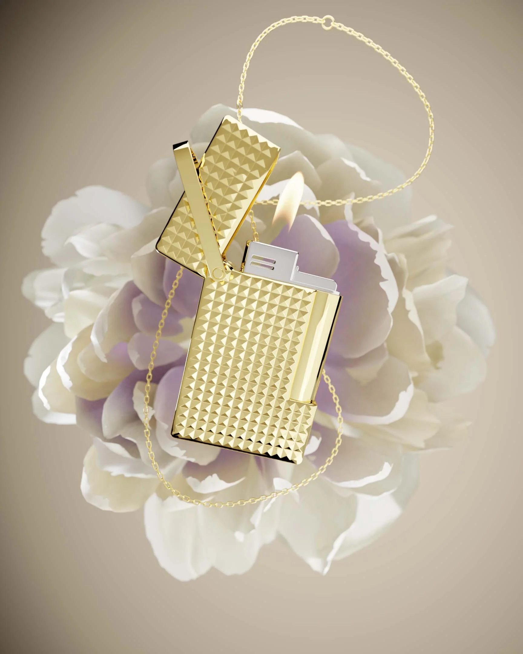 Inspirada na cultura Hip-Hop, a marca de luxo francesa S.T. Dupont apresenta o isqueiro em um colar ao mercado. Um isqueiro Dupont sempre foi uma peça de destaque, mas agora mais do que nunca, quando você pode usá-lo como uma peça de exibição. Este isqueiro piezoelétrico com uma chama suave está disponível em três versões. É pequeno e prático, pendurado em um colar de 90 cm de comprimento. O comprimento da corrente é ajustável de 80 cm a 85 cm a 90 cm. O isqueiro é recarregável e vem vazio; um cilindro de gás deve ser comprado separadamente. Com este colar inovador, você nunca mais perderá seu isqueiro.