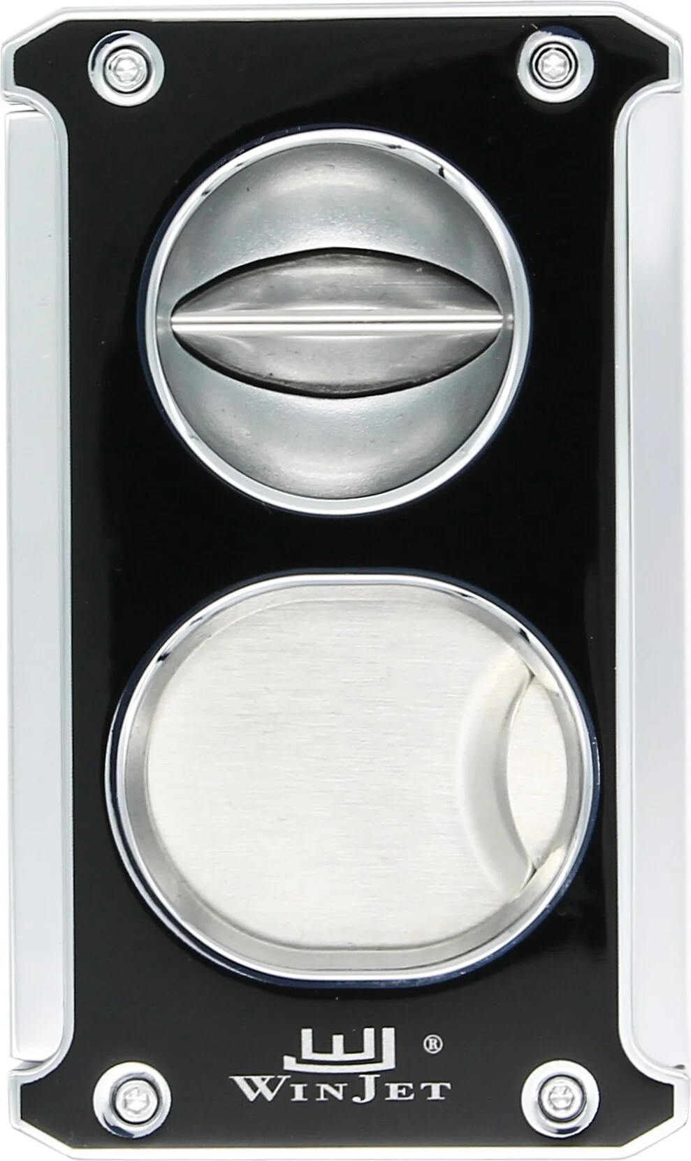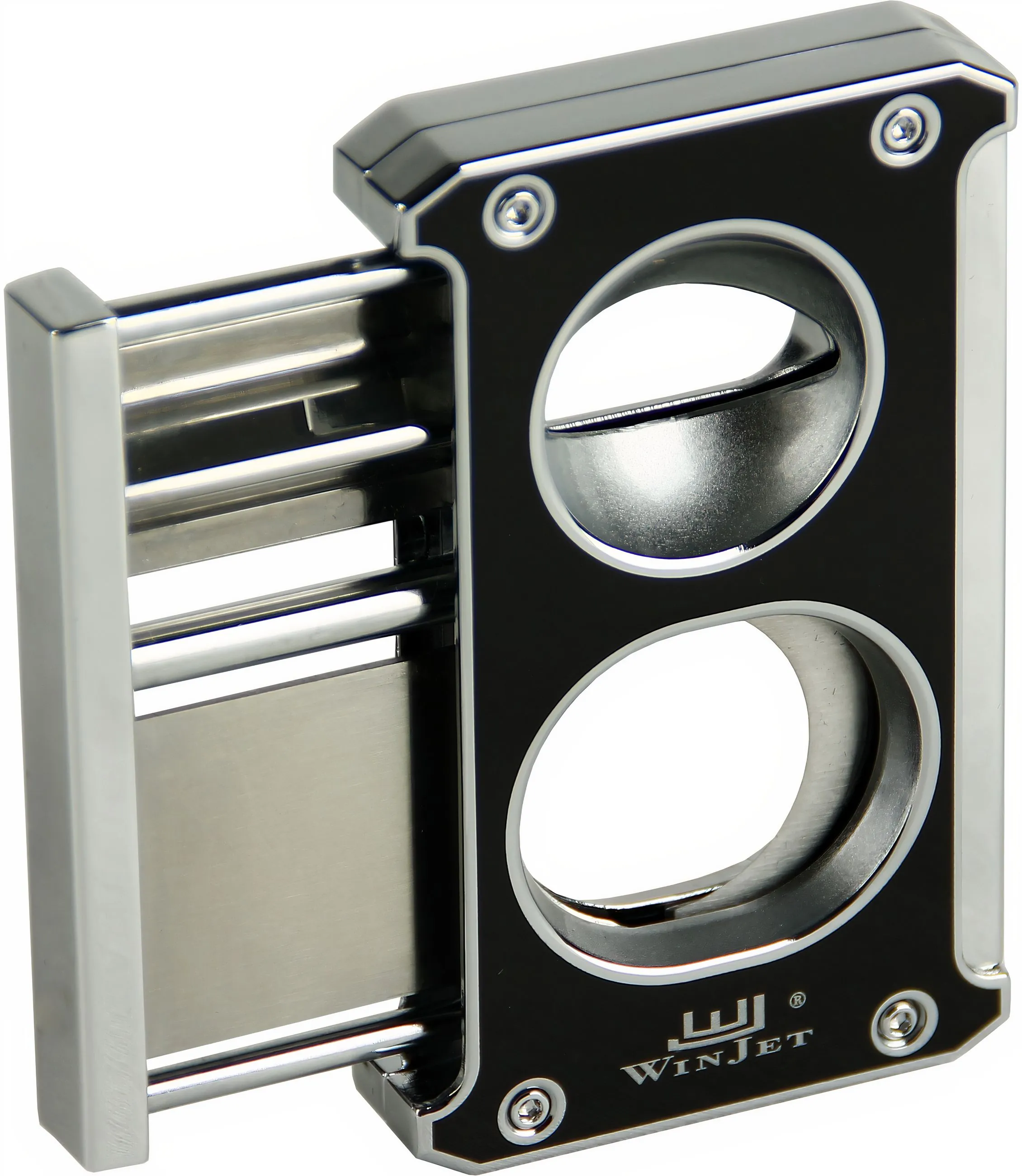 Melhore sua experiência com charutos com o cortador de charutos 3 em 1 Winjet em preto brilhante com detalhes em prata. Este acessório versátil atende a diferentes preferências de entusiastas de charutos, combinando um corte clássico, corte em V e furador de charutos em uma única ferramenta.
