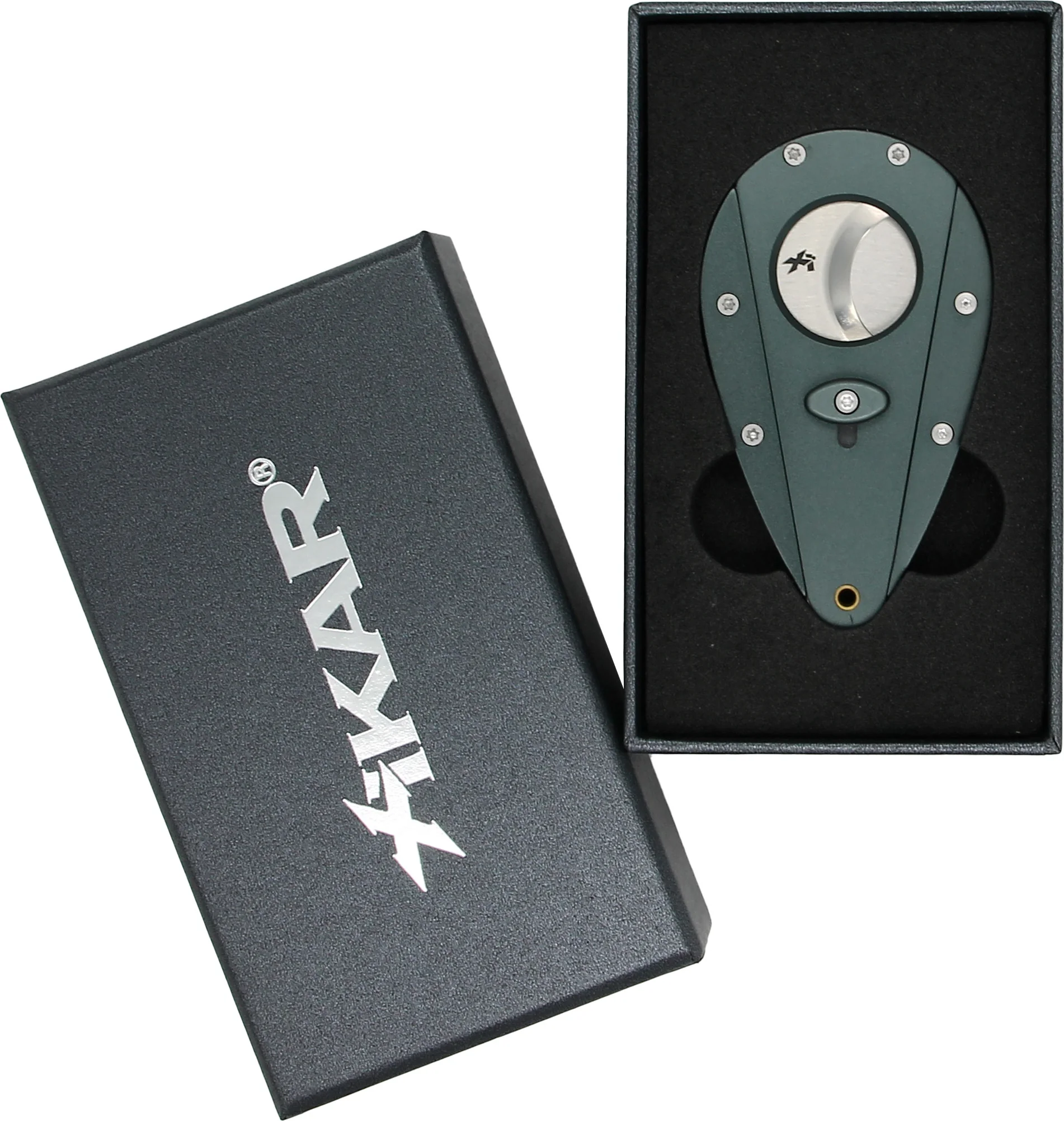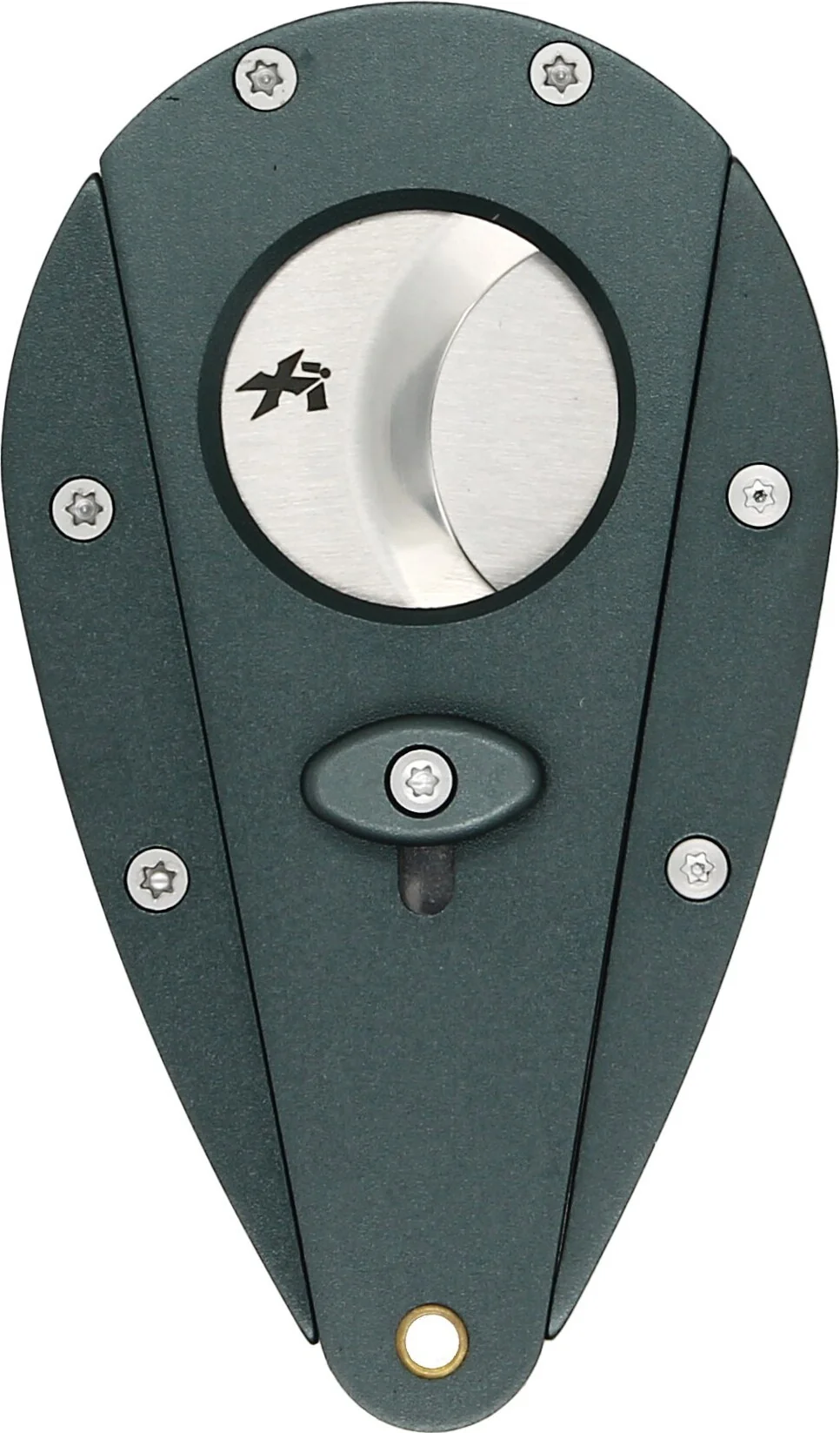 O design Xi da marca registrada do cortador compreende duas lâminas de aço inoxidável 440 de alta qualidade que possuem uma classificação Rockwell C de 57. Em outras palavras, as lâminas são superduras e sempre estarão afiadas e prontas para a ação. Apenas um toque abre as lâminas carregadas por mola, dando a você uma abertura grande o suficiente para cortar facilmente charutos de calibre 54 e até tão alto quanto um calibre 58. Após cada movimento de corte suave e preciso, as lâminas retornam à posição travada até serem chamadas novamente.