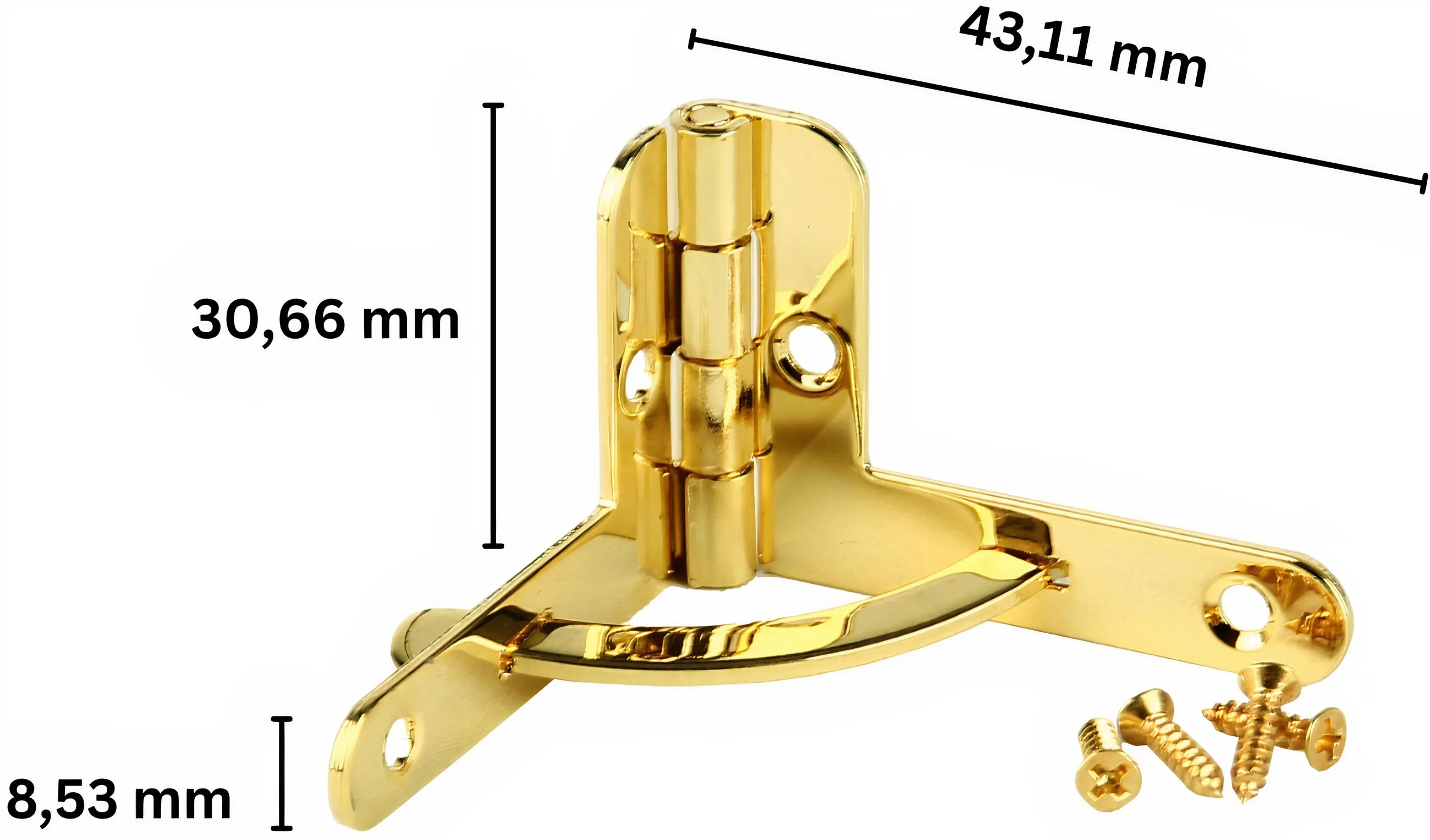 Pequena dobradiça quadrante dourada - 30x40 mm, incluindo parafusos