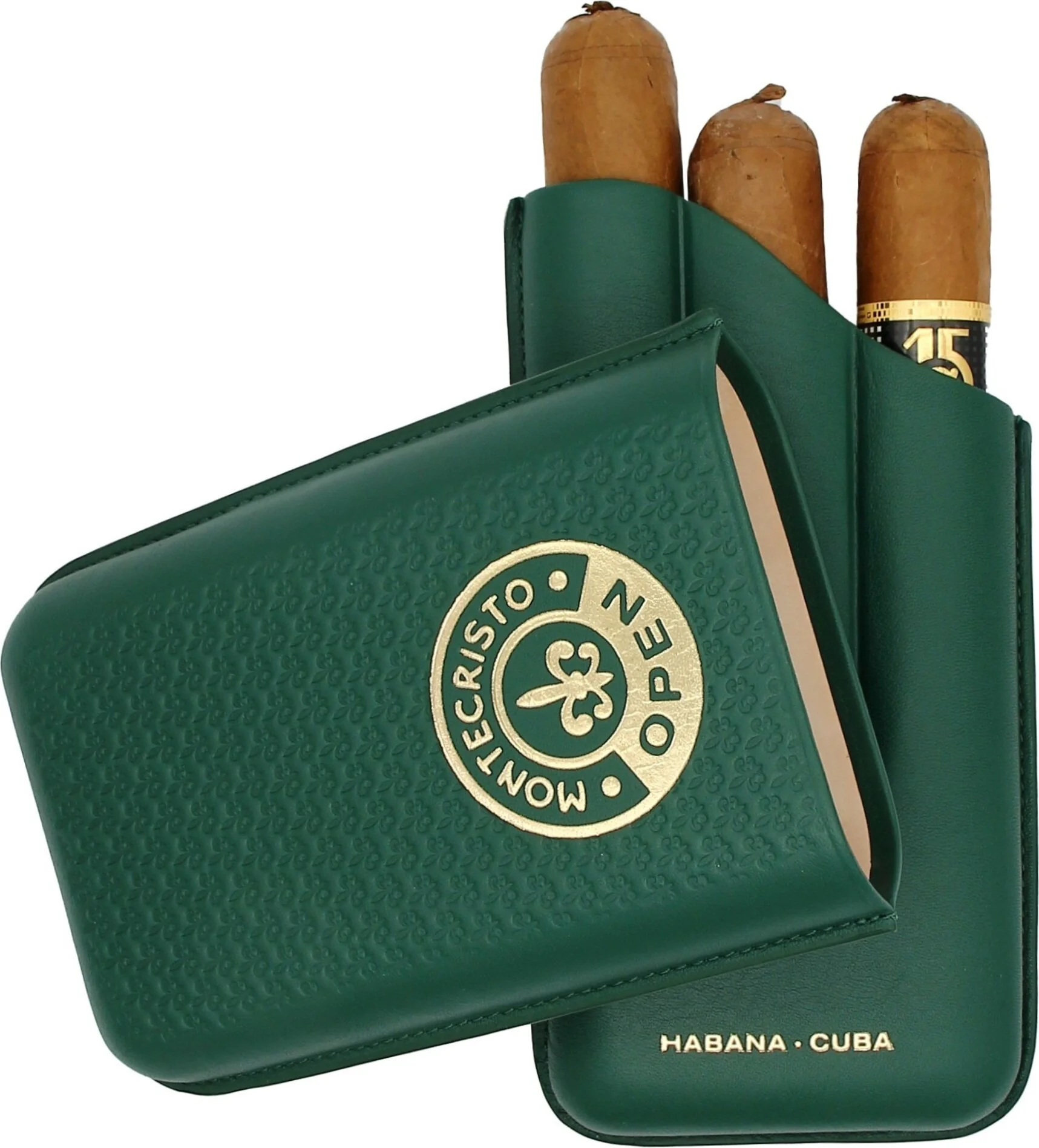 Estojo aberto para charutos Montecristo em couro verde, 3 peças