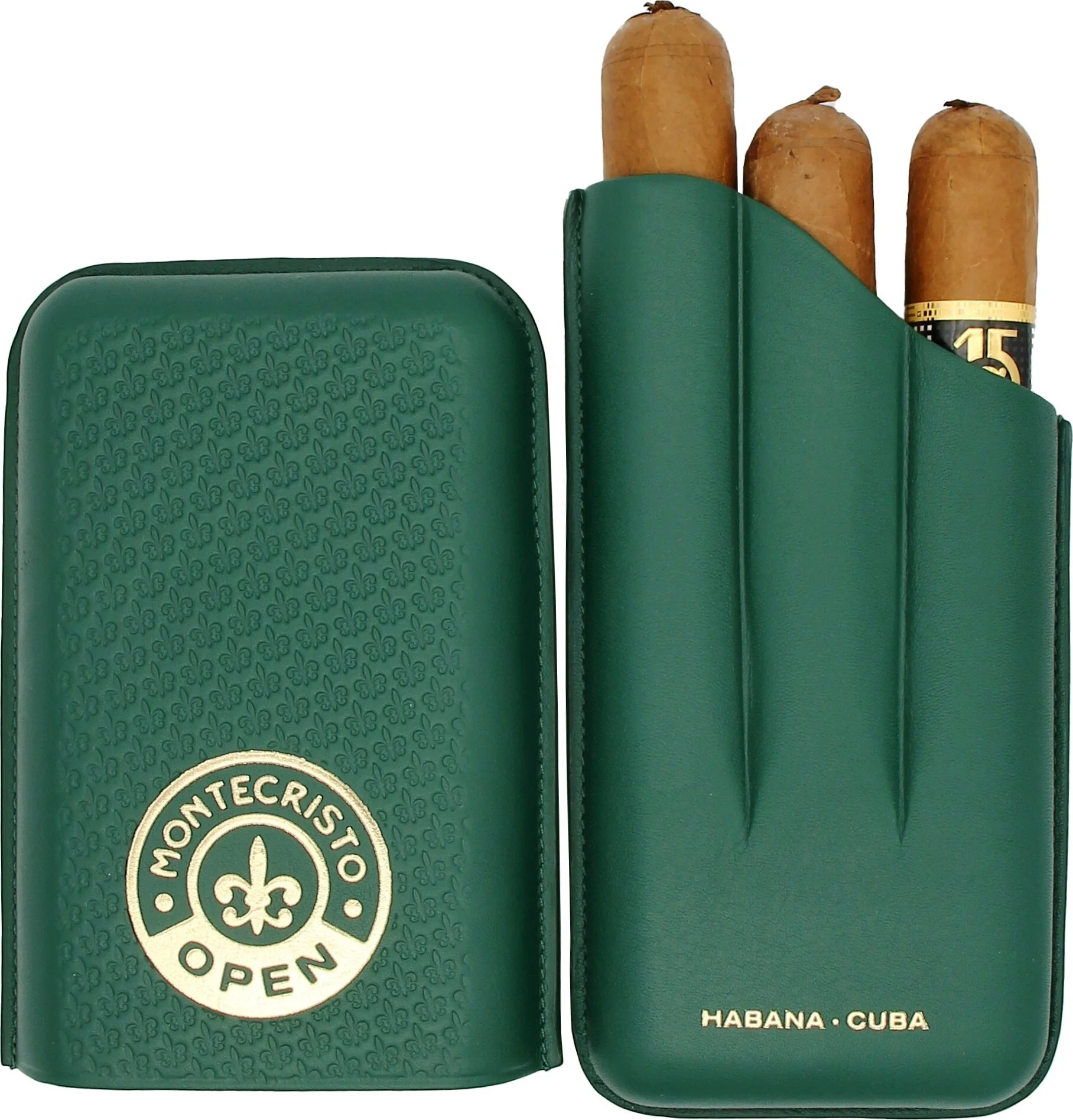 Montecristo Open Leather Cigar Case, Green, for 3 Cigars