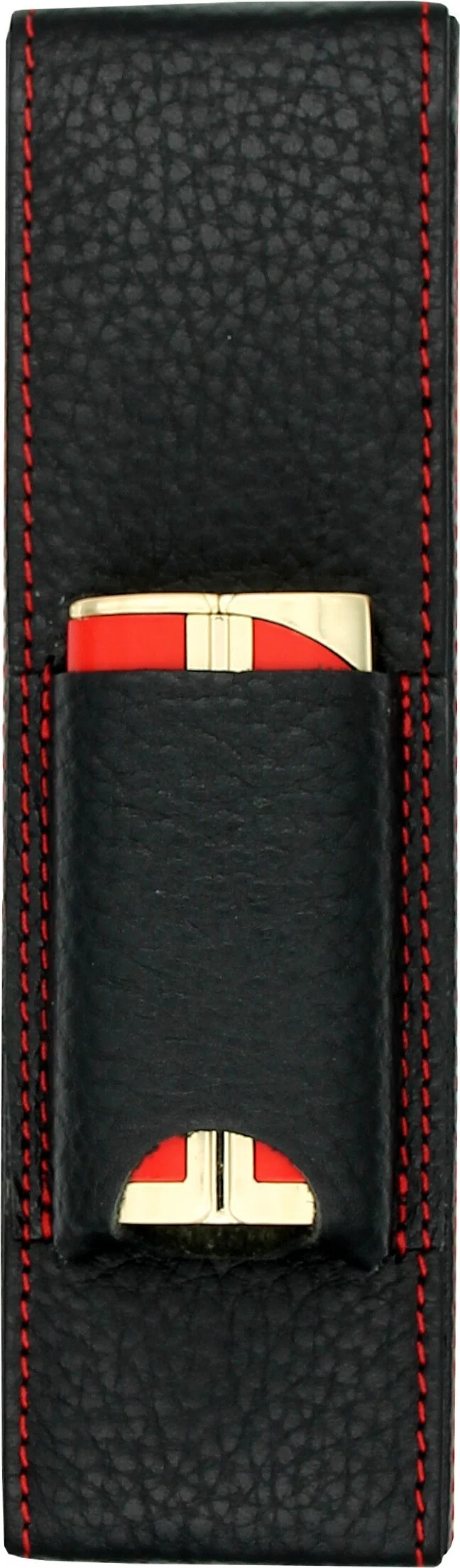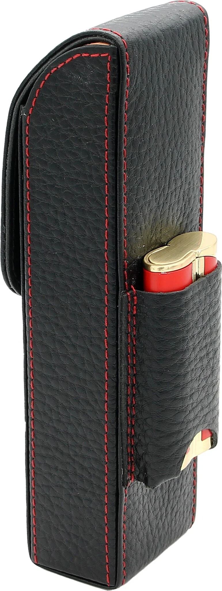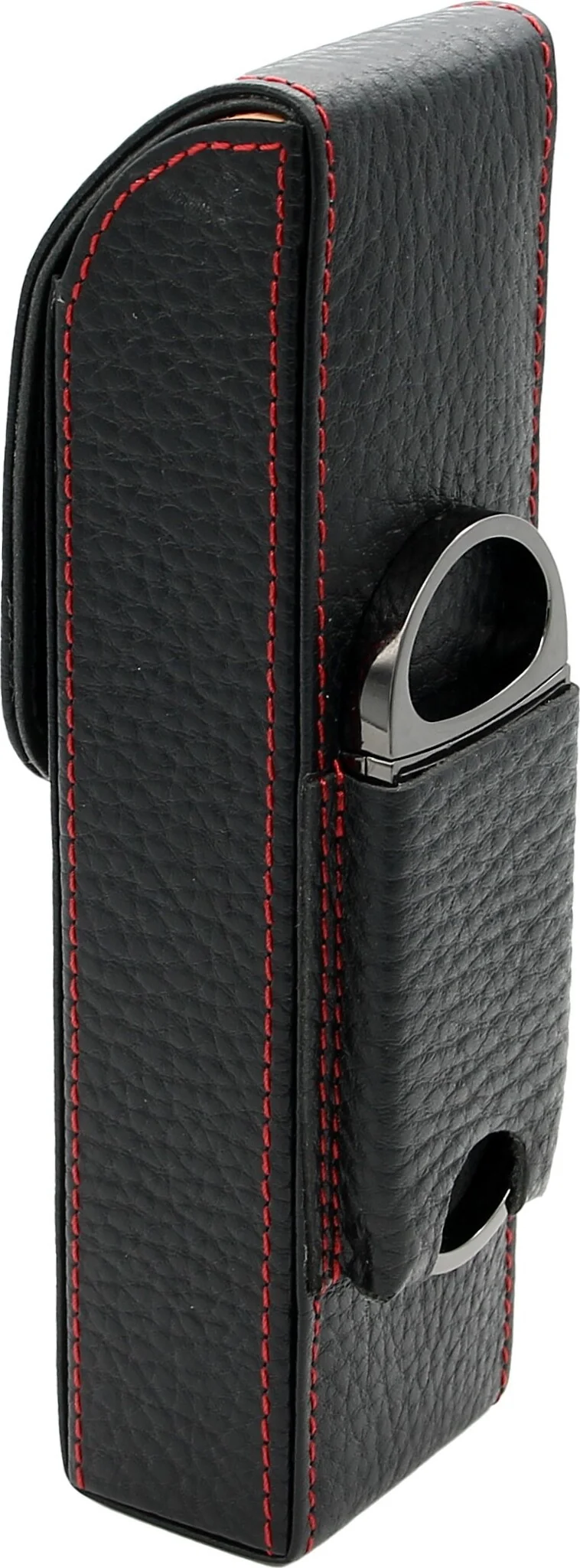 adorini Pocket Cigar Case Black with Red Decorative Stitching with Accessory Pocket