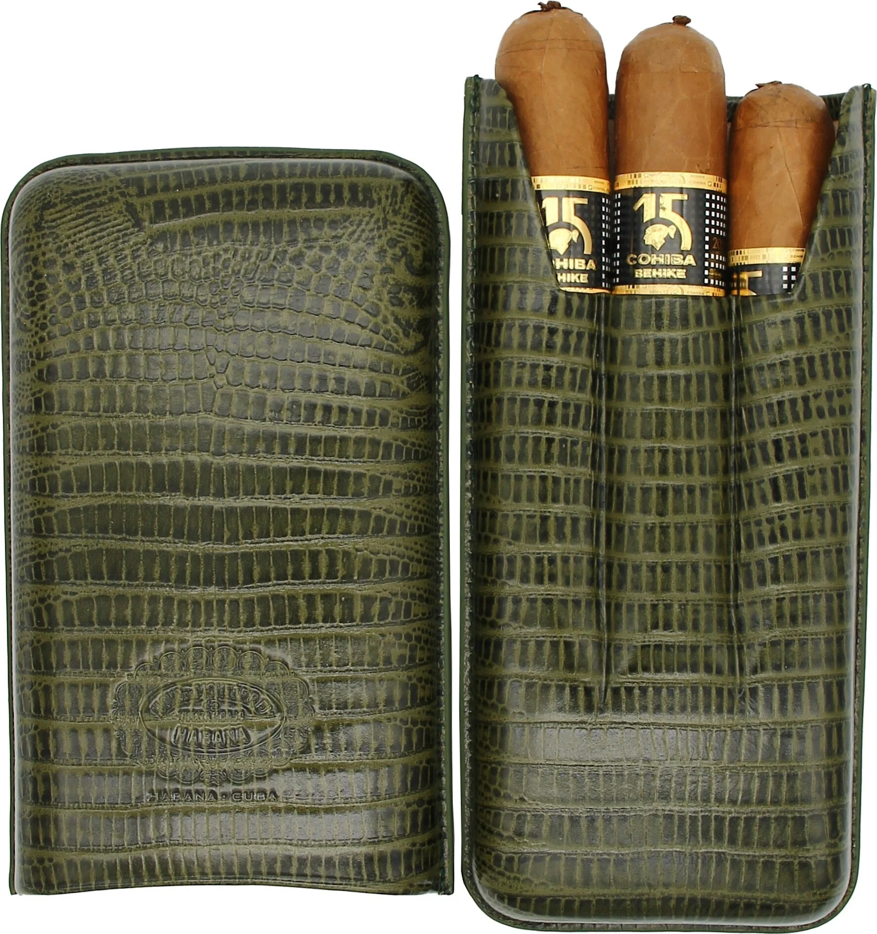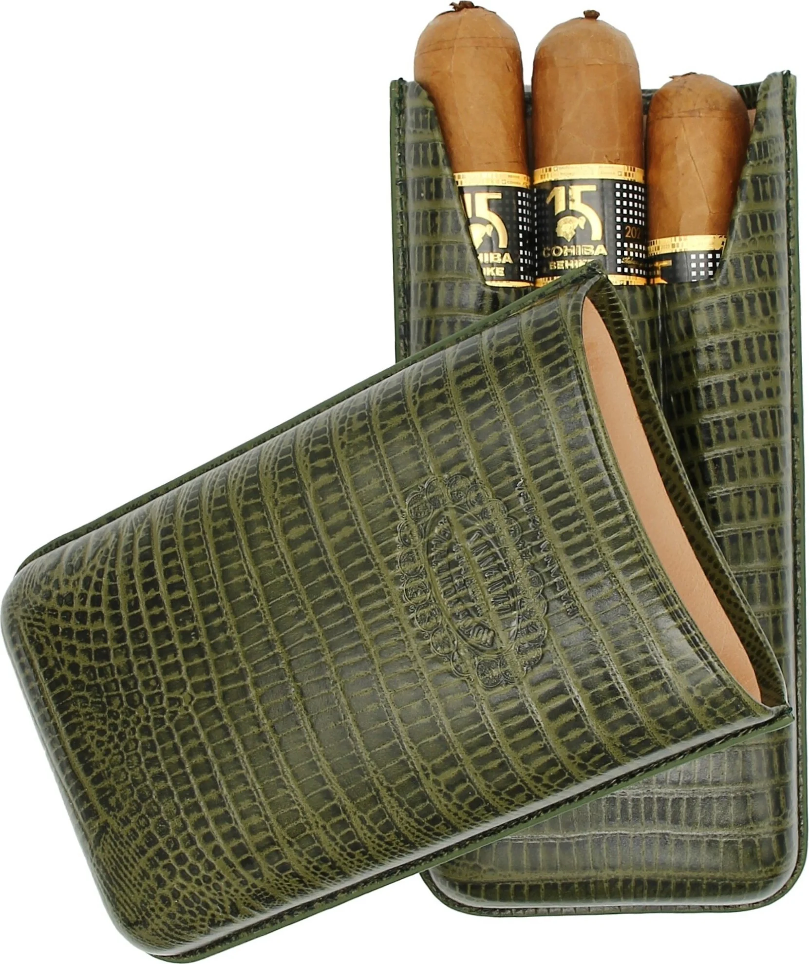 Estojo para Charutos Hoyo de Monterrey Couro Verde 3 unid.