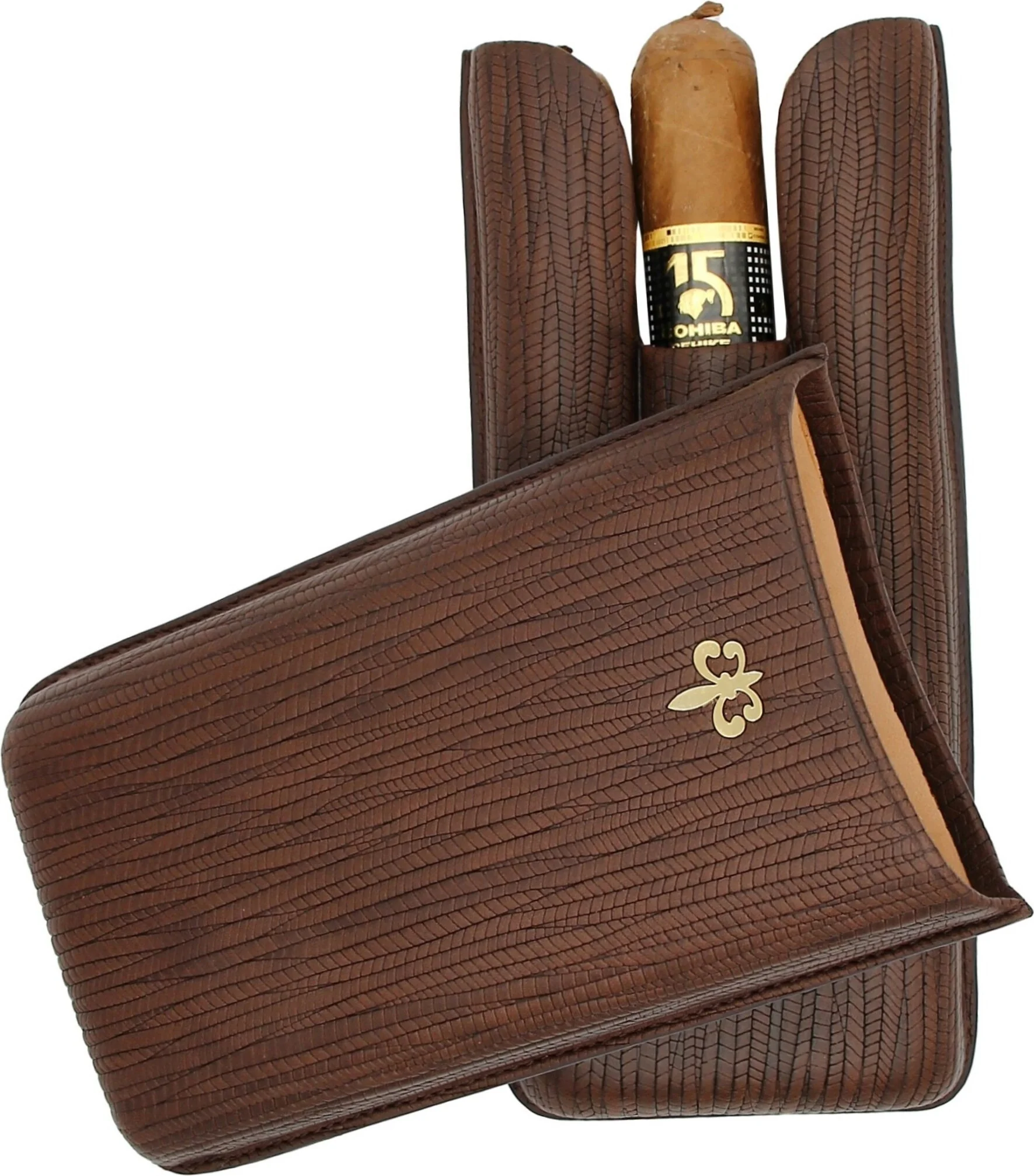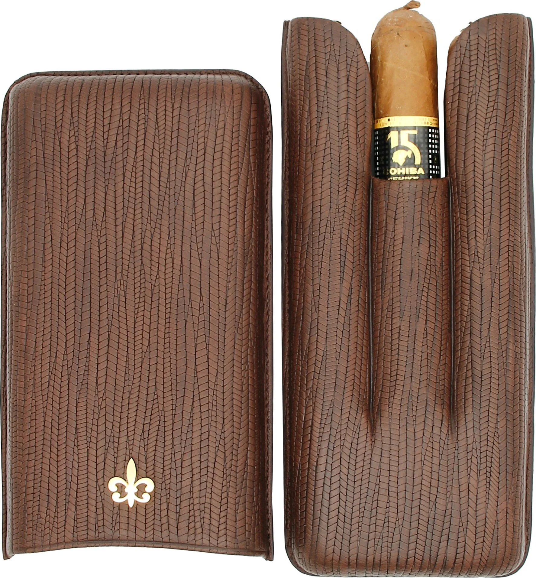 Montecristo Fleur de Lis Leather Cigar Case, Brown, for 3 Cigars
