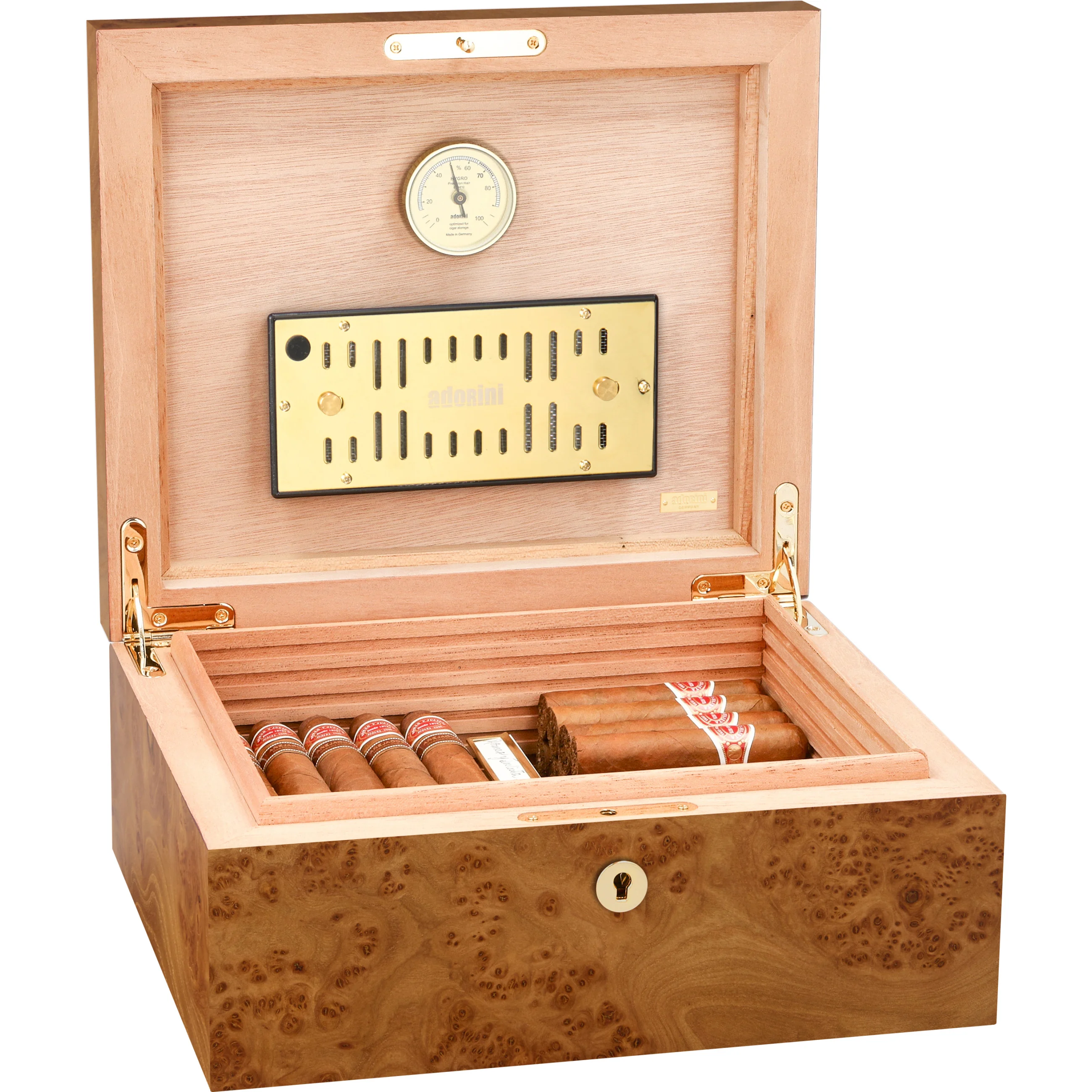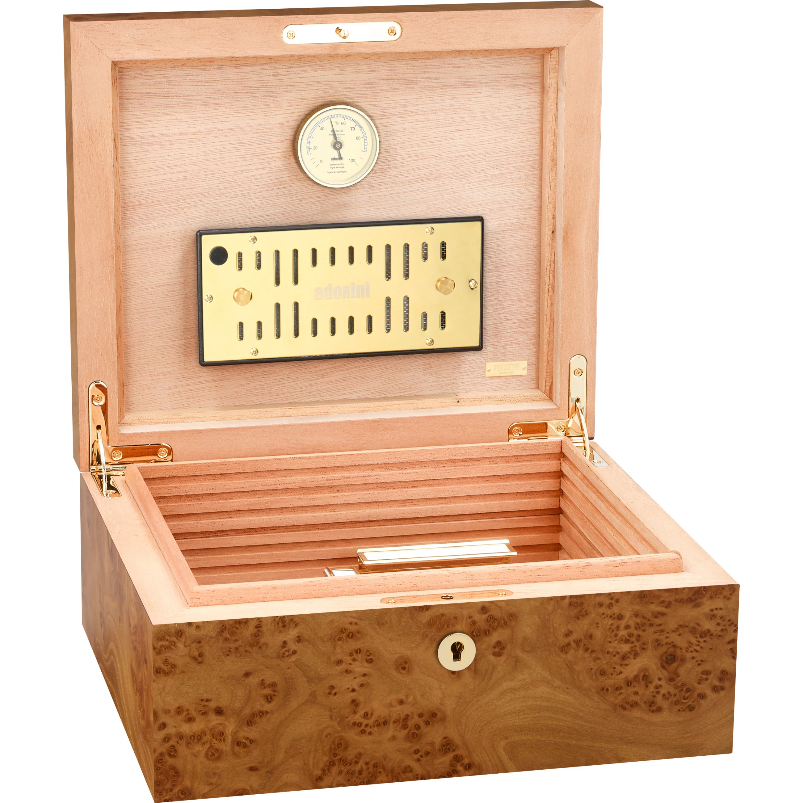 adorini is one of the world's leading humidor brands. Its products are characterized by high-quality materials, sophisticated design, and innovative functionality. Precise hygrometers and humidification systems from adorini can also be found in the world's most exclusive humidors. Cigar aficionados, restaurateurs, and collectors appreciate adorini for its durable quality, stylish craftsmanship, and reliable precision.