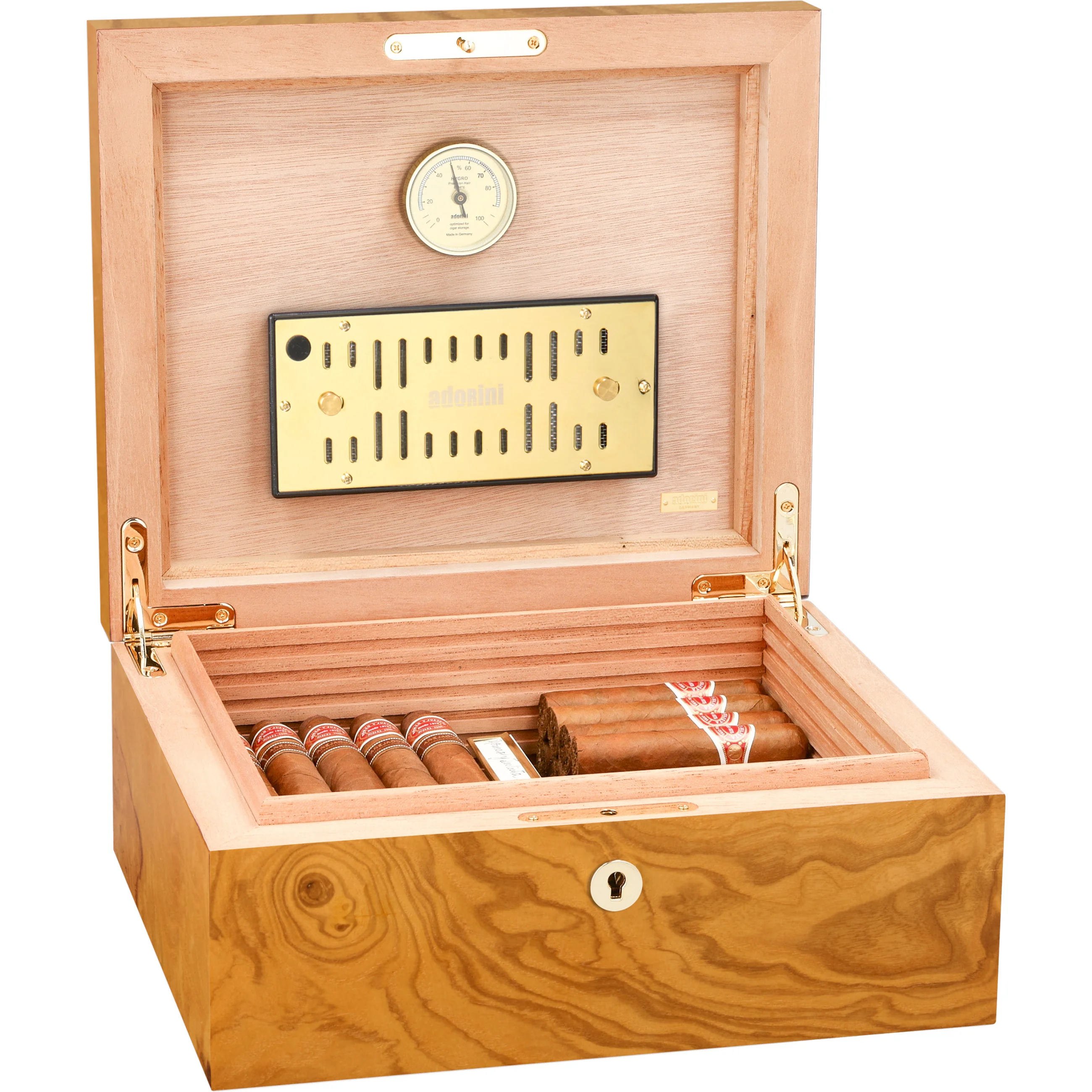Humidor Adorini Salento em madeira de burl de oliveira médio Deluxe