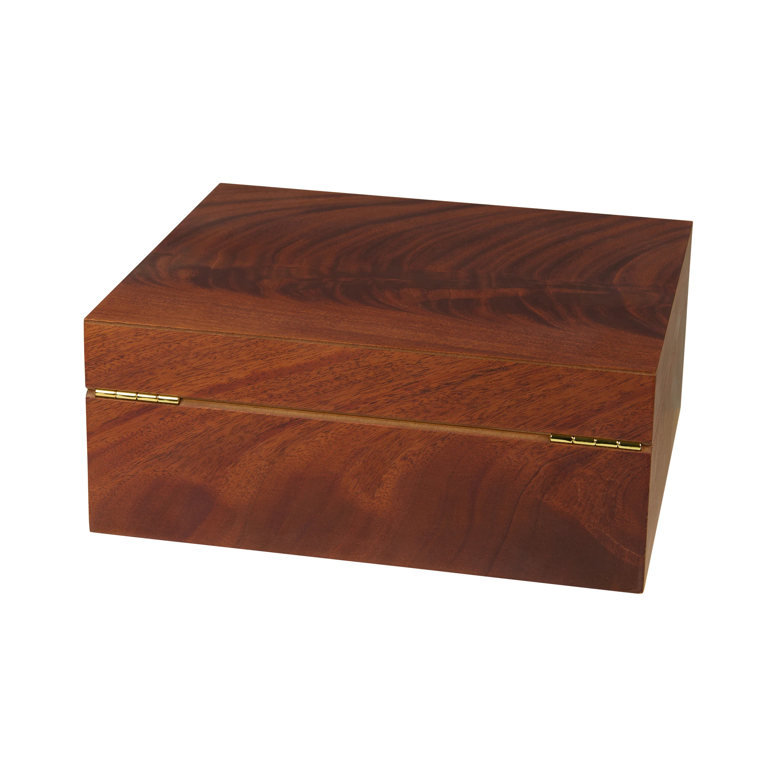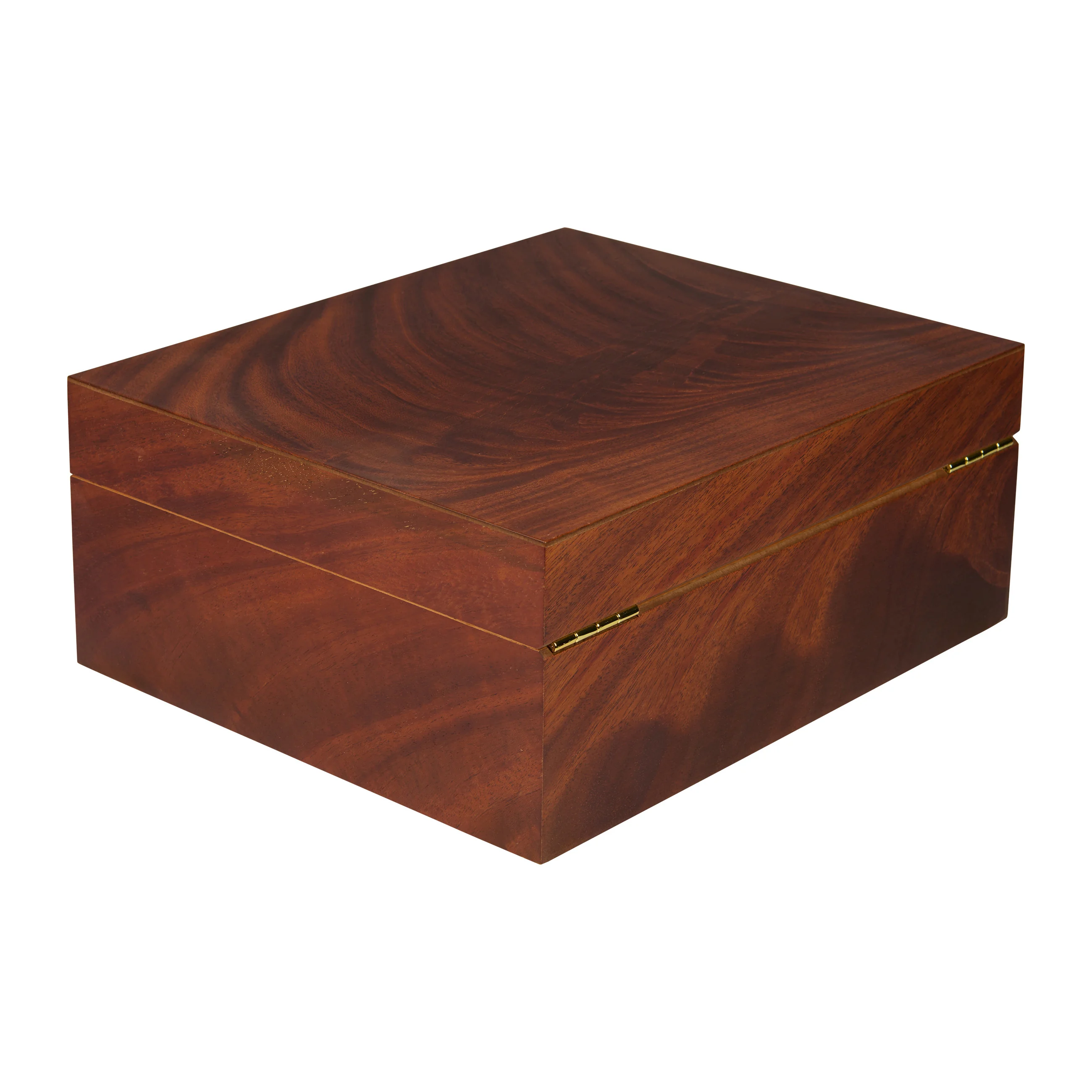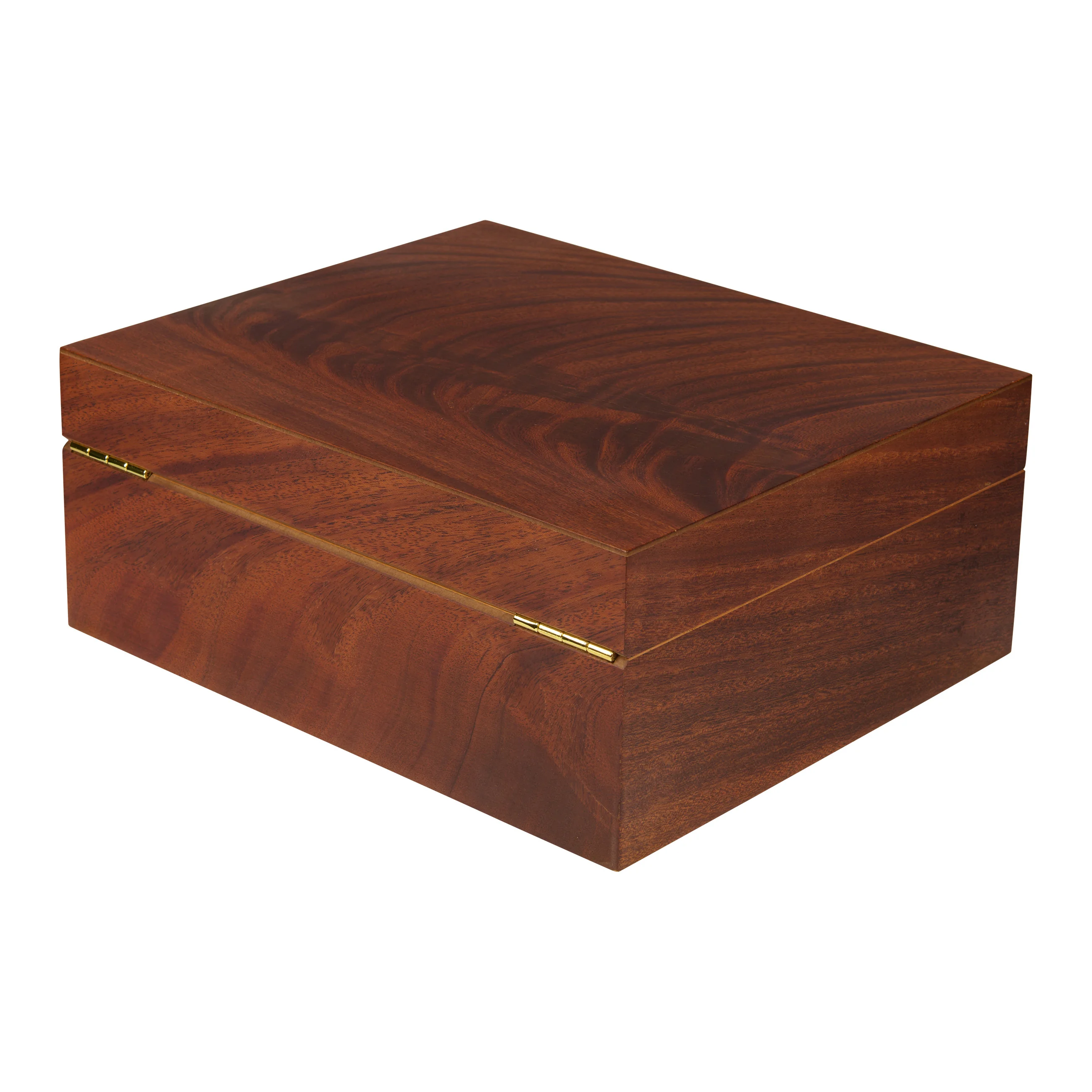 The mahogany wood impresses with its characteristic grain with reddish-brown to dark brown tones, interwoven with striking, flowing grain patterns that give the lid exceptional depth and dynamism. Thanks to its warm appearance, the humidor blends harmoniously into almost any setting. Medium-sized humidors hold up to 75 cigars, providing ample space for your cigar collection.