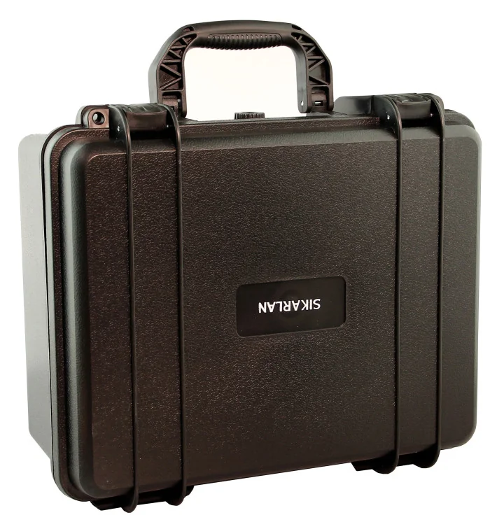 Feito de plástico rígido durável, o umidificador lembra quase uma mala. Ele tem uma alça robusta e dois fechos dobráveis que o tornam à prova d'água e hermético. Além disso, há uma válvula de equalização de pressão na frente que foi especialmente desenvolvida para viagens aéreas: se o umidificador for difícil de abrir após um voo devido à pressão do ar, esta válvula facilita a equalização da pressão.