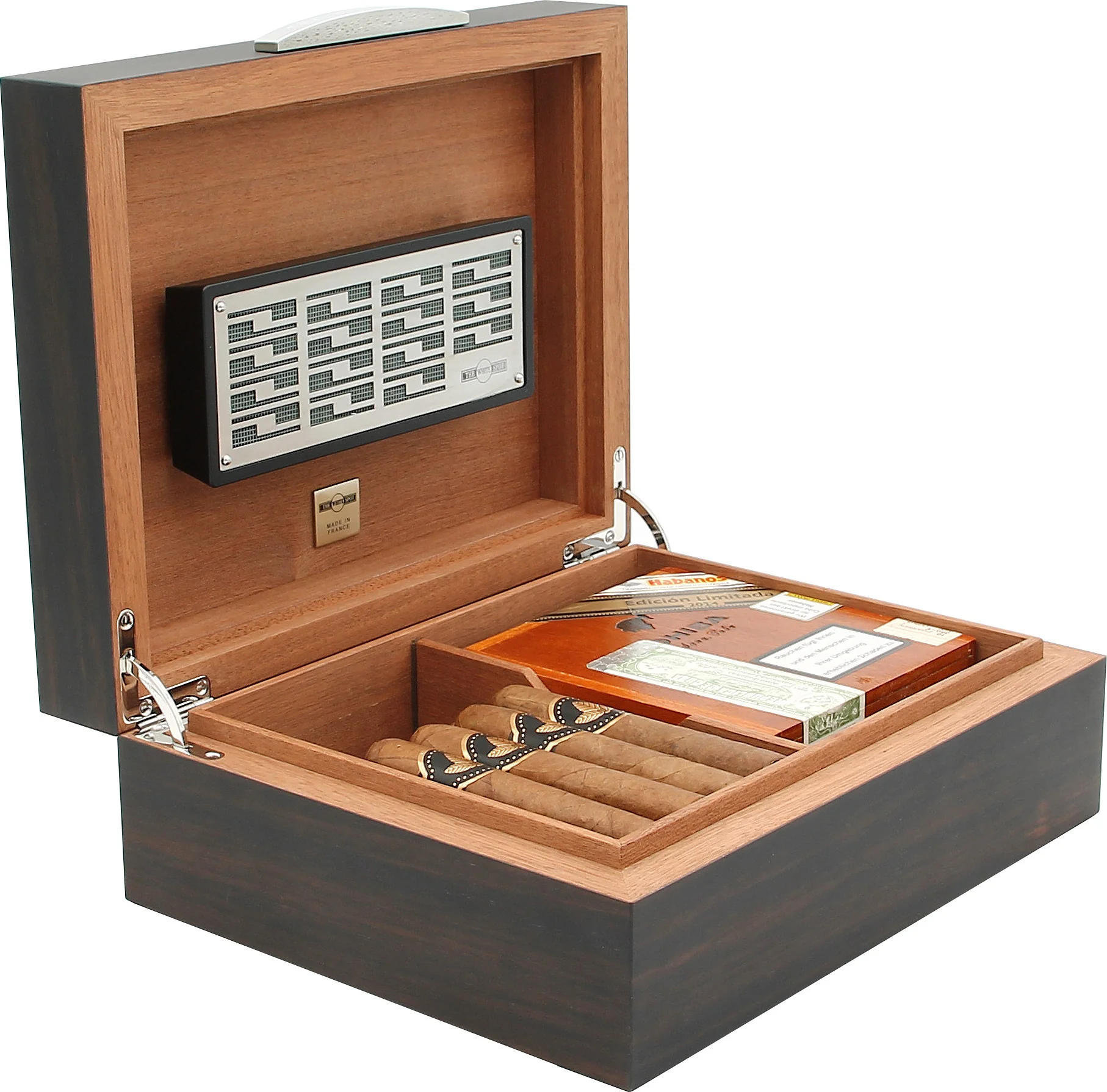 The humidor is made for Dunhill in France, as a plaque inside impressively confirms.