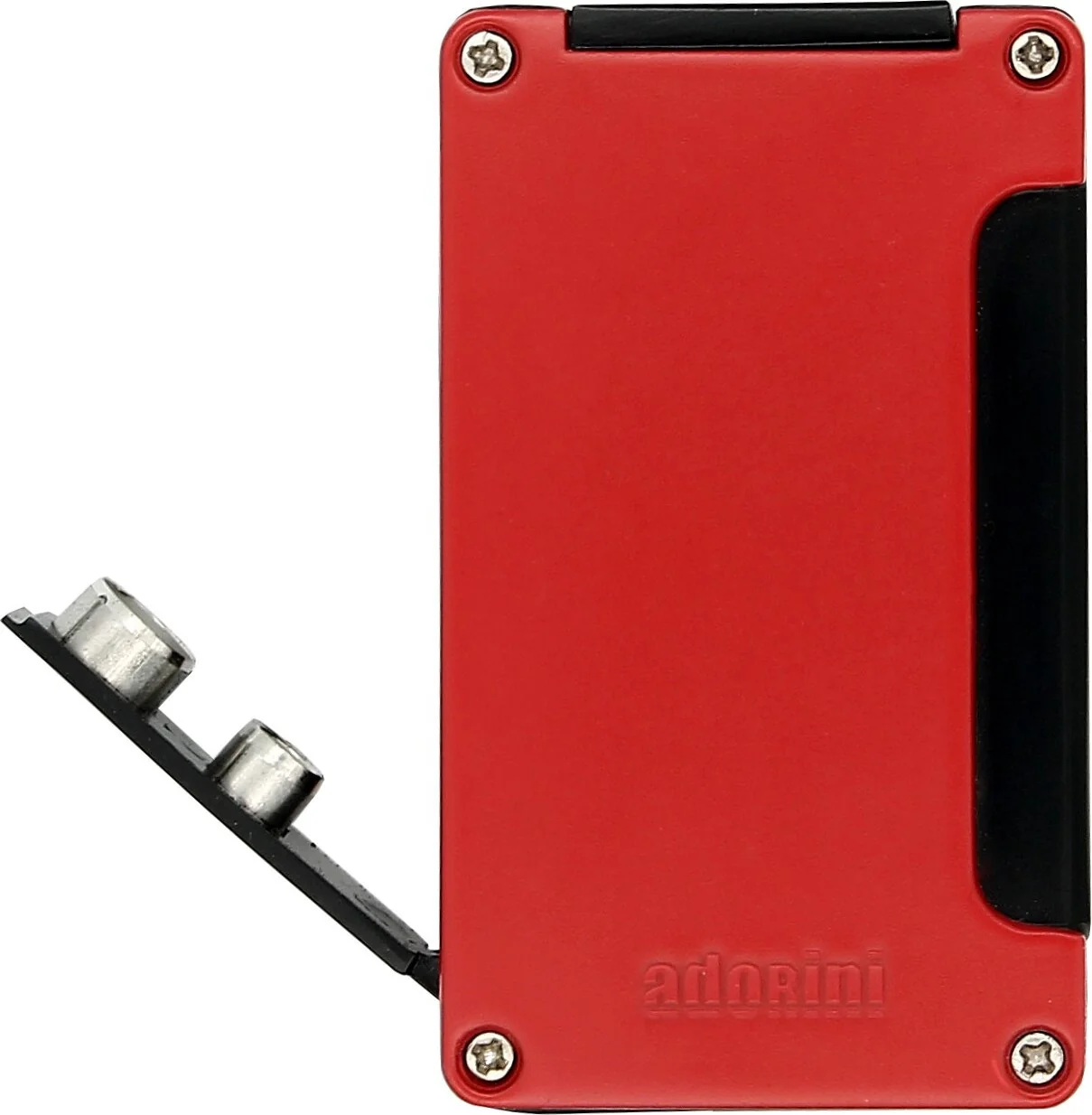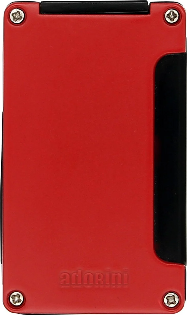 - Corpo preto com revestimento em laca vermelha. Base em aço inoxidável.