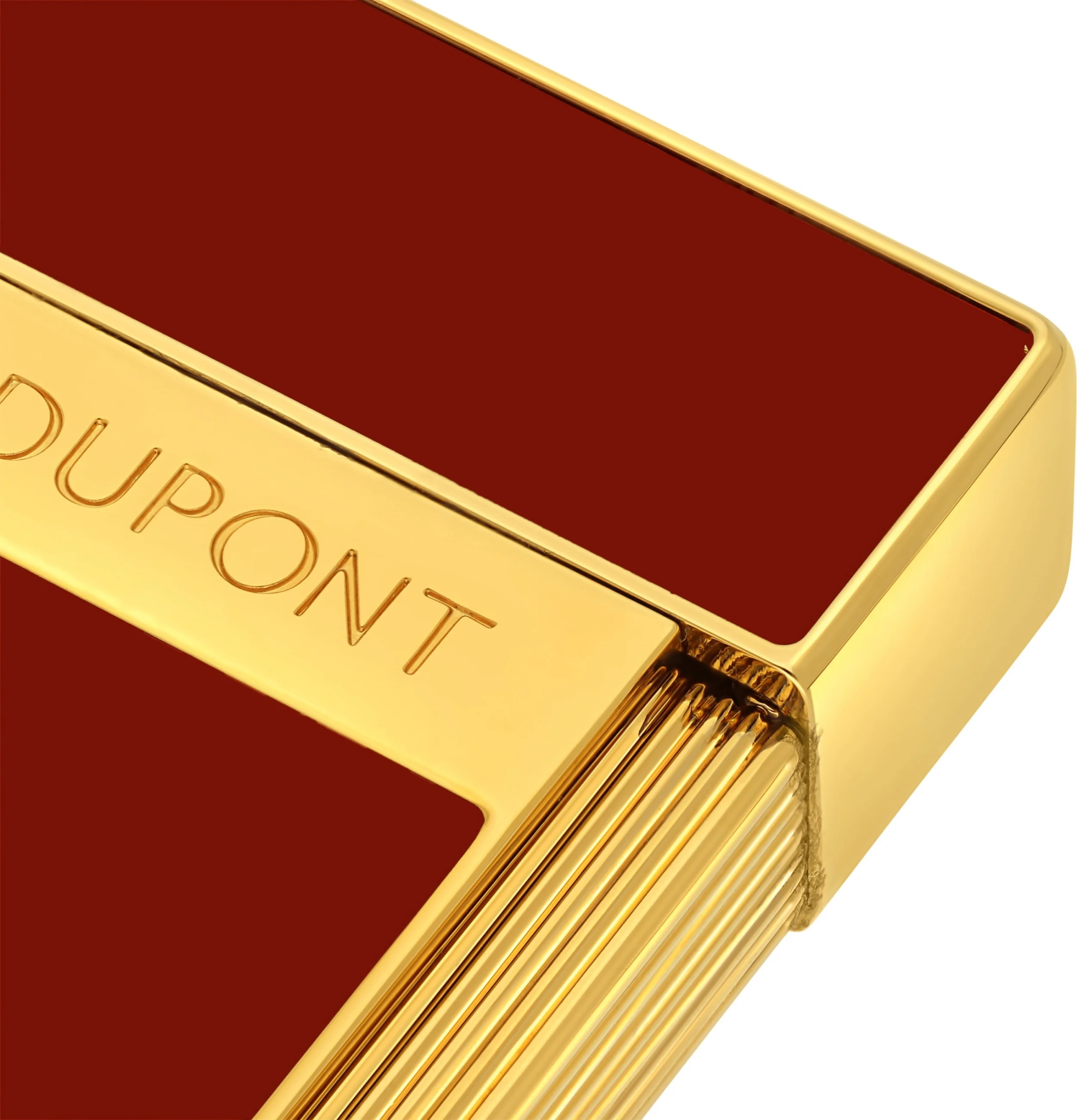 O S.T. Dupont Biggy Lighter apresenta-se em uma nobre cor bordô, combinada com detalhes em dourado que destacam o caráter luxuoso desse item de colecionador.
