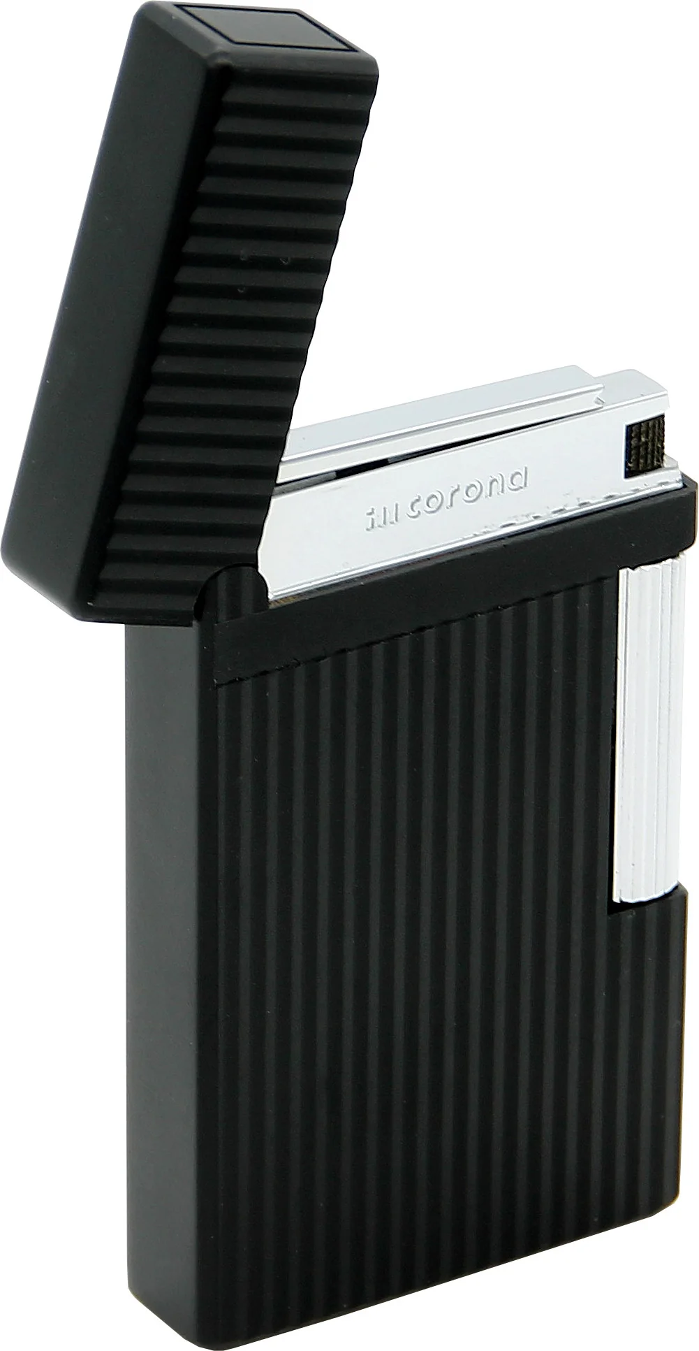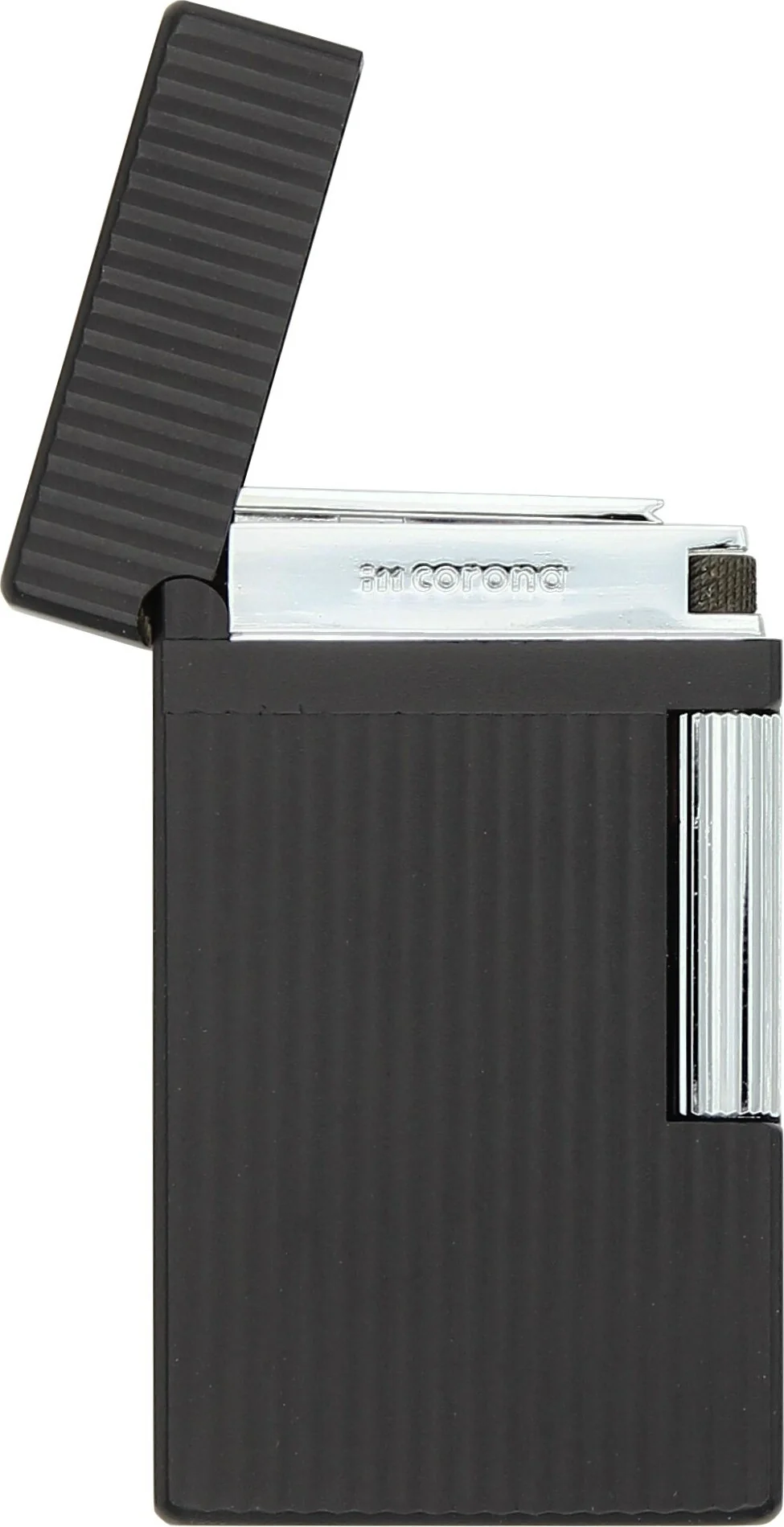 The IM Corona Double Corona is an elegant lighter in matte black with shiny silver decorative elements that combines classic design and modern elegance.