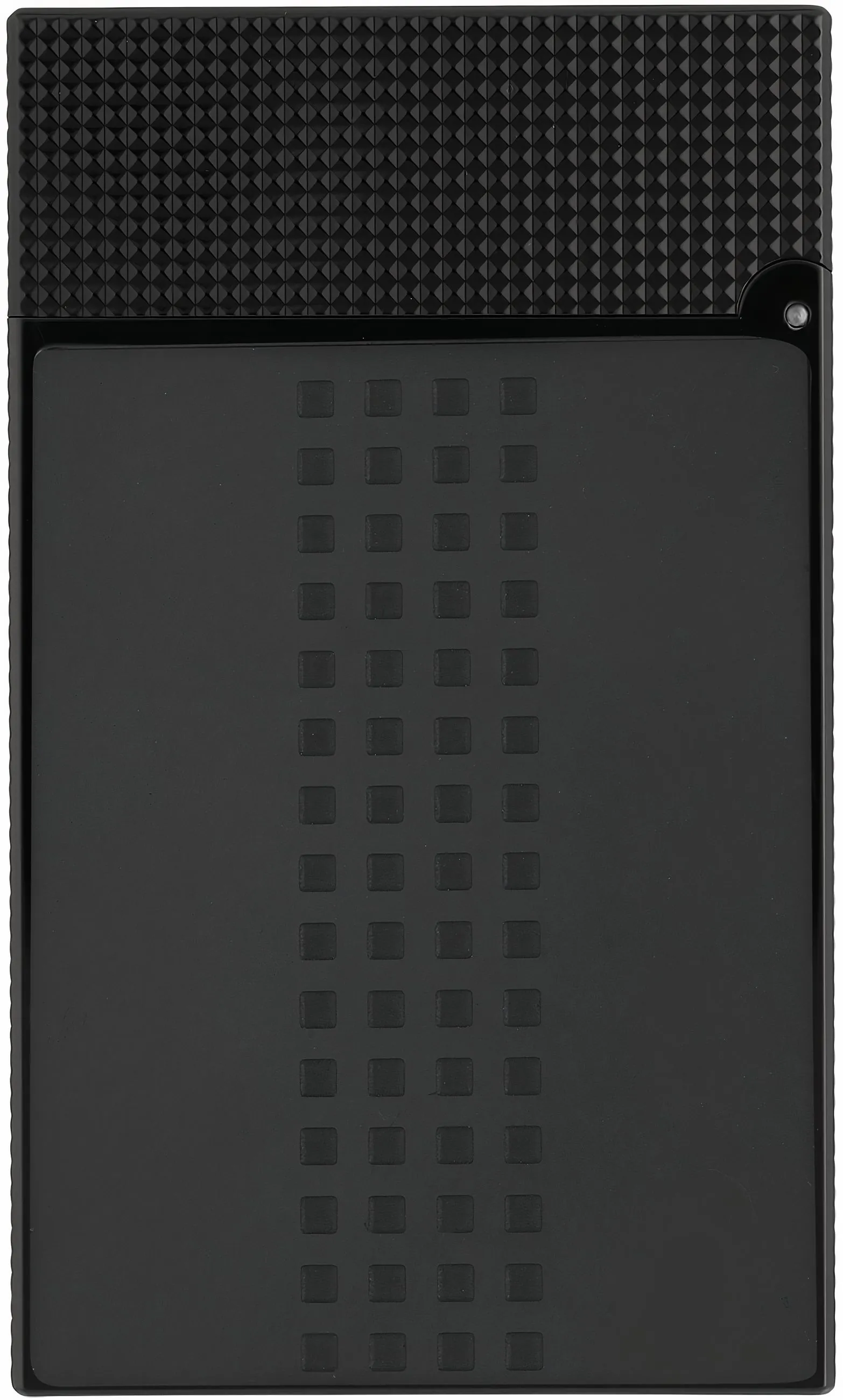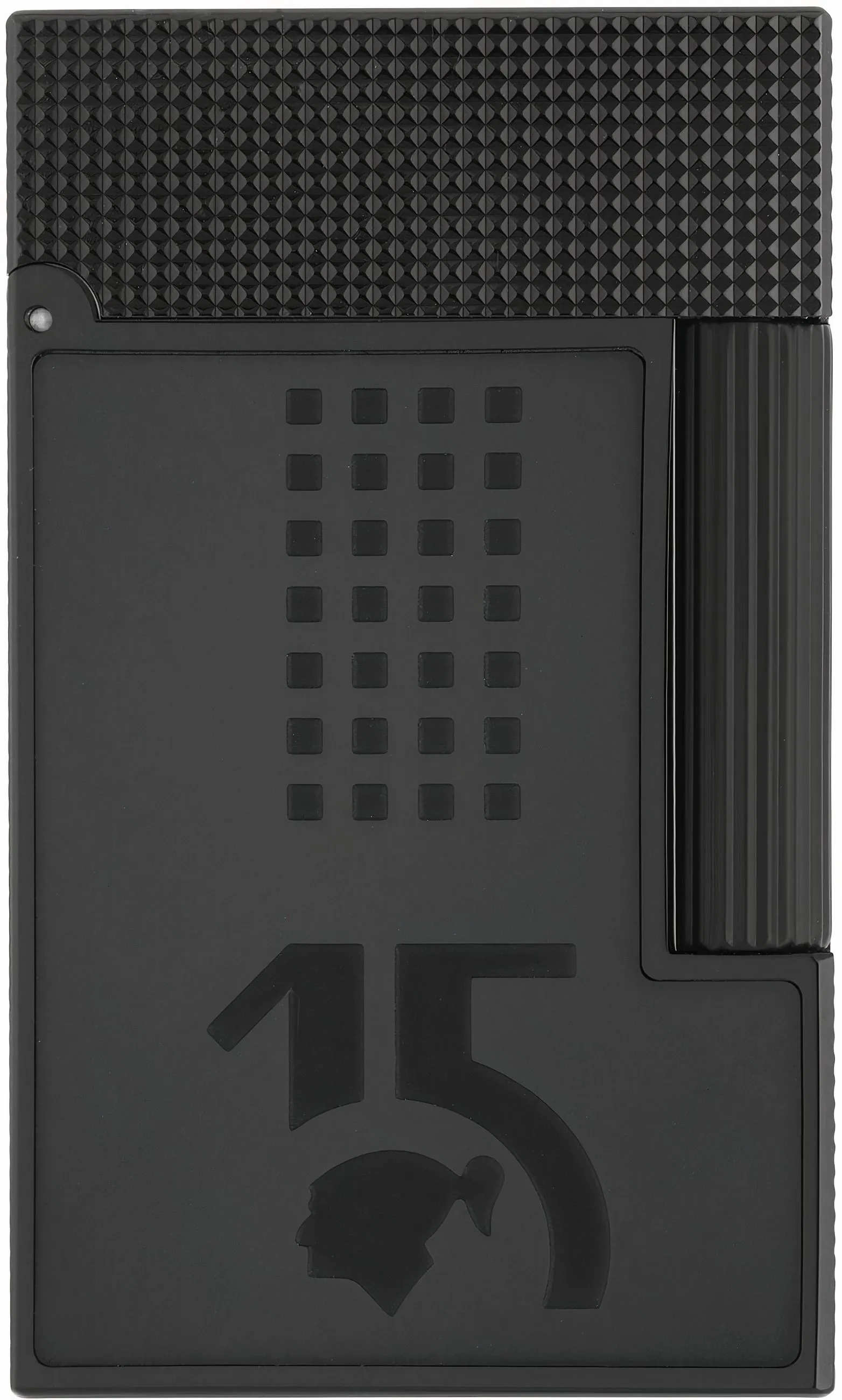 O acabamento totalmente preto fosco dá ao isqueiro uma aparência moderna e elegante. É recarregável e a intensidade da chama pode ser convenientemente ajustada usando o dial na base. A confiável ignição de pedra garante longevidade, e as pederneiras podem ser facilmente substituídas.