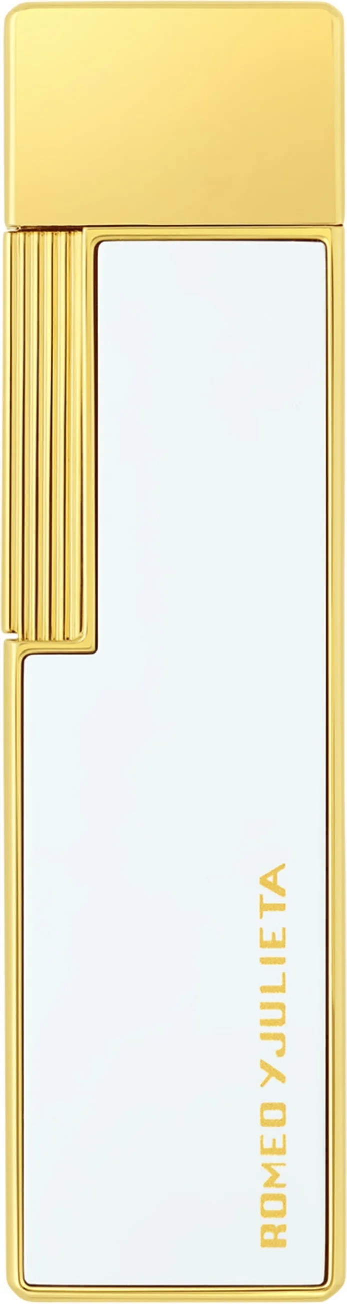 A frente apresenta a famosa cena da sacada, que está intrinsecamente ligada à história de Romeu e Julieta. O verso é adornado com a inscrição estilizada "Romeo y Julieta", enquanto o formato discreto do isqueiro garante não apenas uma aparência elegante, mas também um encaixe perfeito na mão.