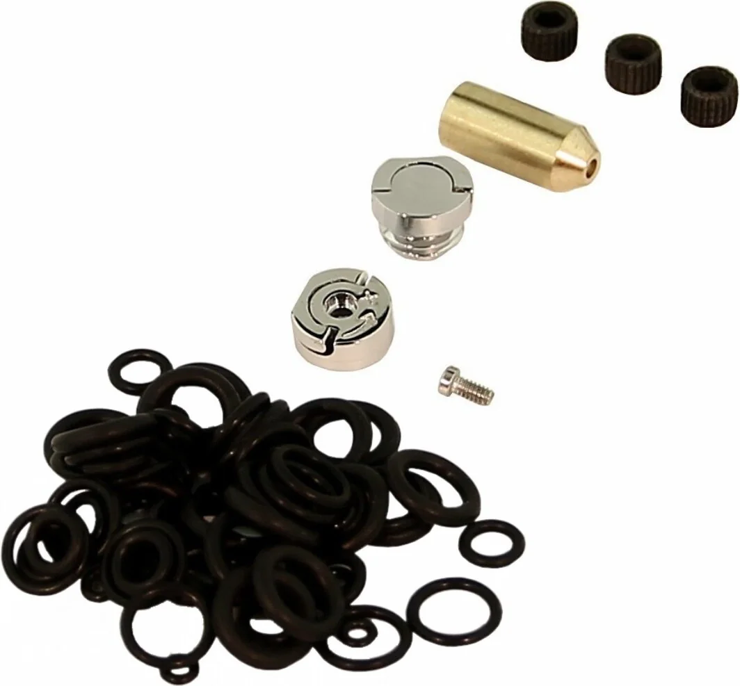 - Dois parafusos de base de reposição: para a válvula de recarga e para o ajuste da chama
