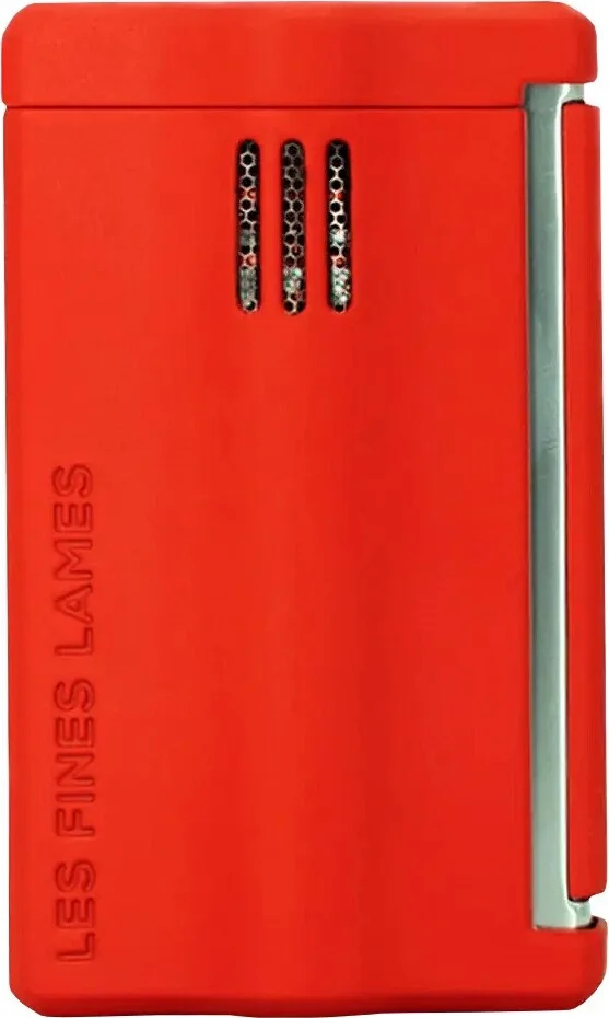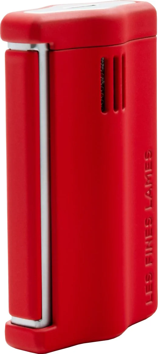 O isqueiro Le Feu RS em vermelho da marca francesa Les Fines Lames é um acessório elegante para os amantes de charutos mais exigentes. De acordo com o fundador da marca, o nome RS significa "Ring Shape", inspirado no formato de um anel de charuto. Esse conceito de design se reflete em sua construção incomum: Visto de cima, o isqueiro começa retangular, faz uma transição para uma curva e termina retangular novamente - uma declaração visual inconfundível.