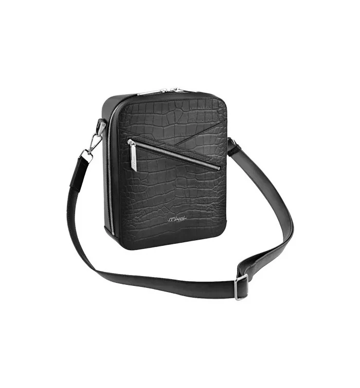 Bolsa de ombro para charutos S.T. Dupont Le Grand Atelier preta A bolsa de ombro para charutos S.T. Dupont Le Grand Atelier em preto é a escolha perfeita para os amantes de charutos que estão sempre em movimento. Feita com o melhor couro italiano e certificada pelo Leather Working Group (LWG), esta bolsa combina design moderno com funcionalidade prática. O logotipo da marca S.T. Dupont adorna a frente da bolsa e lhe dá um toque elegante. Dentro da bolsa, há compartimentos separados para acessórios de charutos, como isqueiros e cortadores, bem como compartimentos especiais para cartões de crédito. Esta divisão garante que todos os utensílios importantes sejam armazenados com segurança e de forma organizada. Com dimensões de 25 x 20,5 x 7,5 cm, a bolsa oferece espaço suficiente para seus itens pessoais e acessórios para charutos. Design e materiais:
