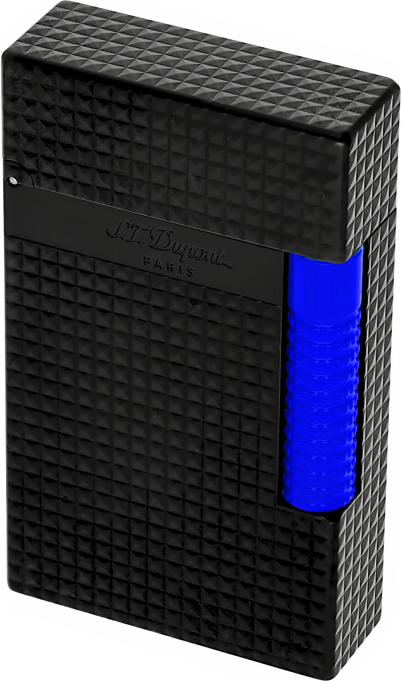 - **Design e materiais:** O isqueiro Le Grand Fluo Blue combina um padrão de guilhoché modelado na forma de uma cabeça de diamante com um acabamento semi-fosco e um acento azul brilhante para um visual moderno.