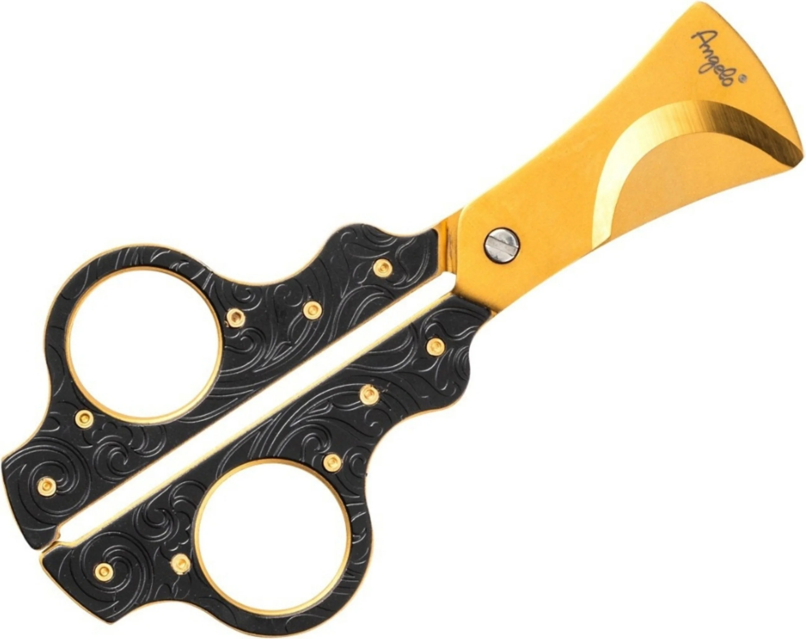 Tesoura para charuto Angelo de alta qualidade em metal preto e dourado