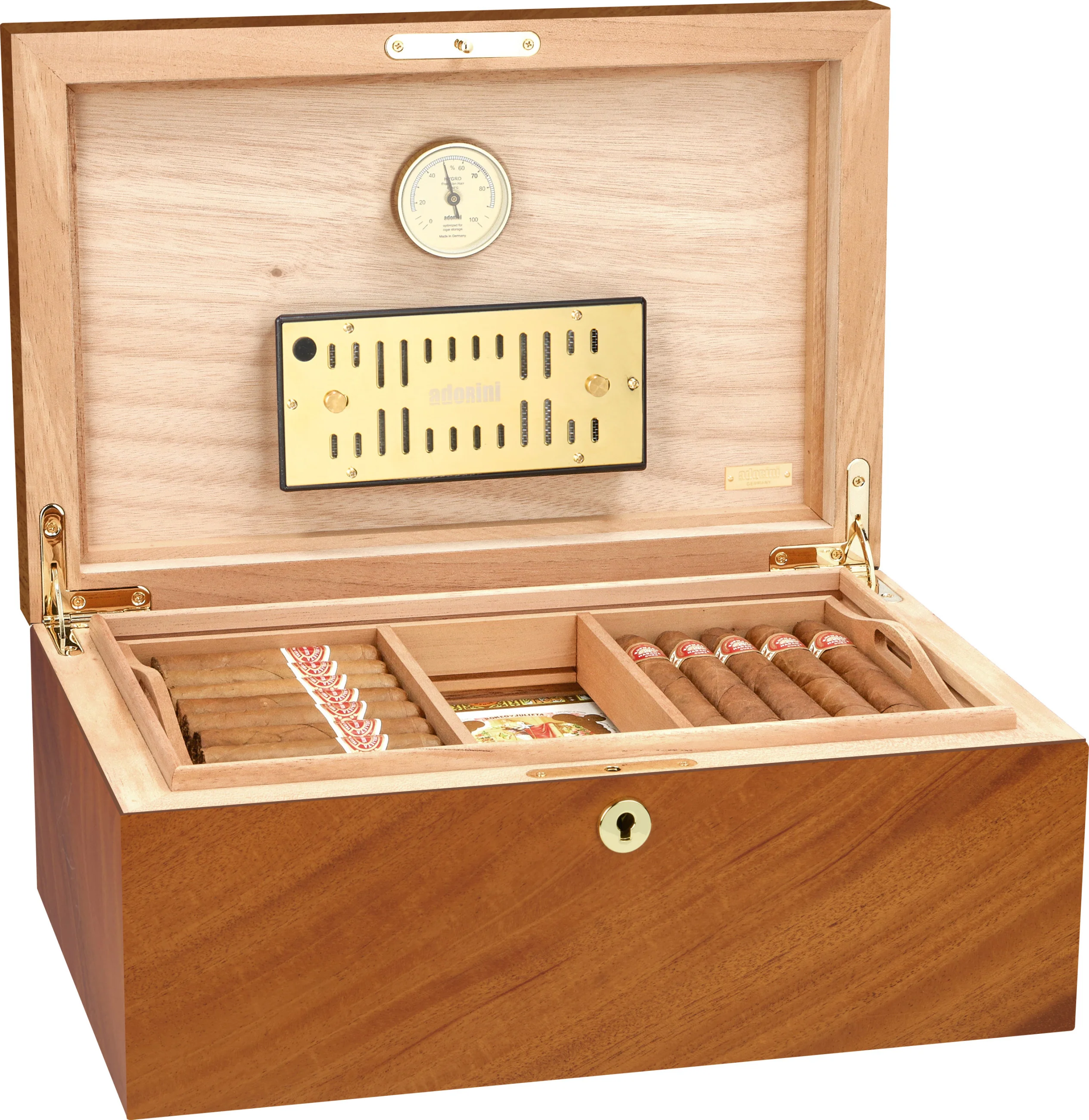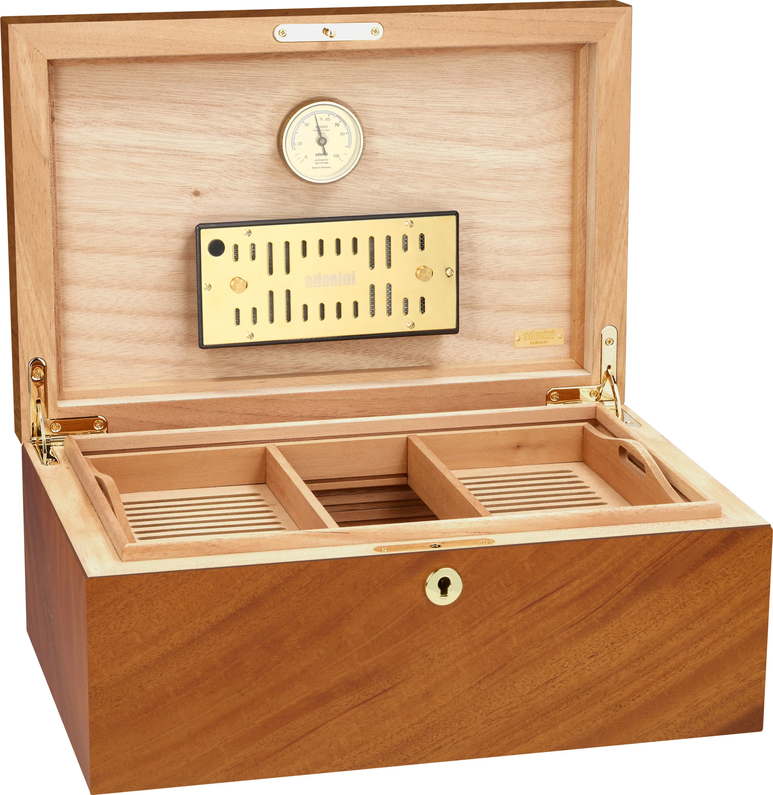 - Gold plated acryl polymer based Adorini Deluxe humidifier with adjustable ventilation openings for an optimum regulation of the humidity level