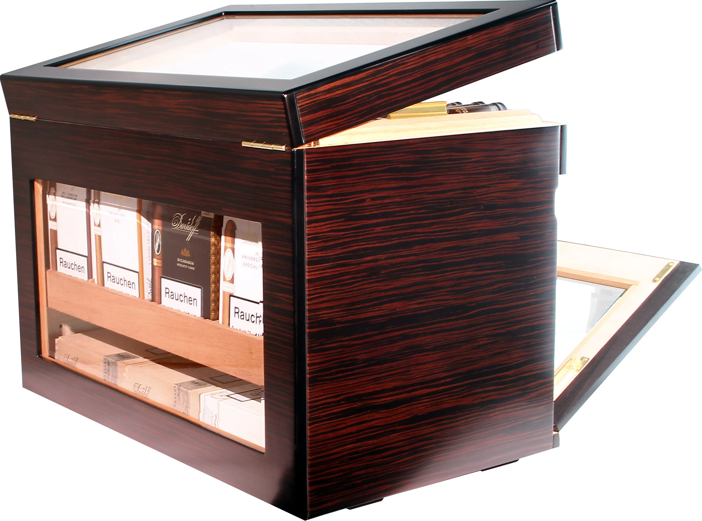 Individual cigars, boxes, or even entire cigar crates can be stored on multiple levels. The interior can be divided into various compartments: