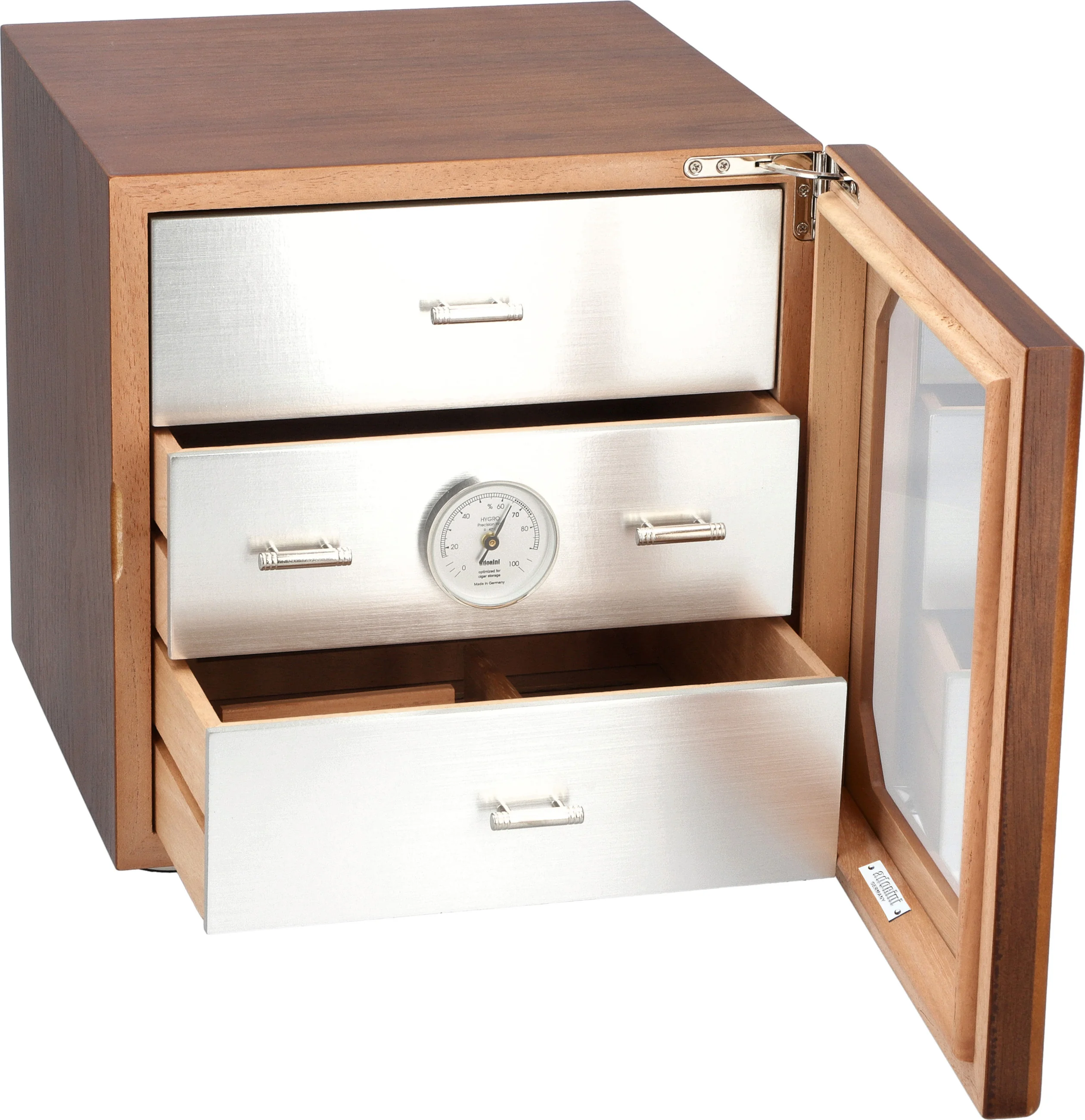 - O umidificador que acompanha o umidor pode ser fixada atrás das gavetas com um imã, desta forma as gavetas podem ser utilizadas para armazenar os charutos