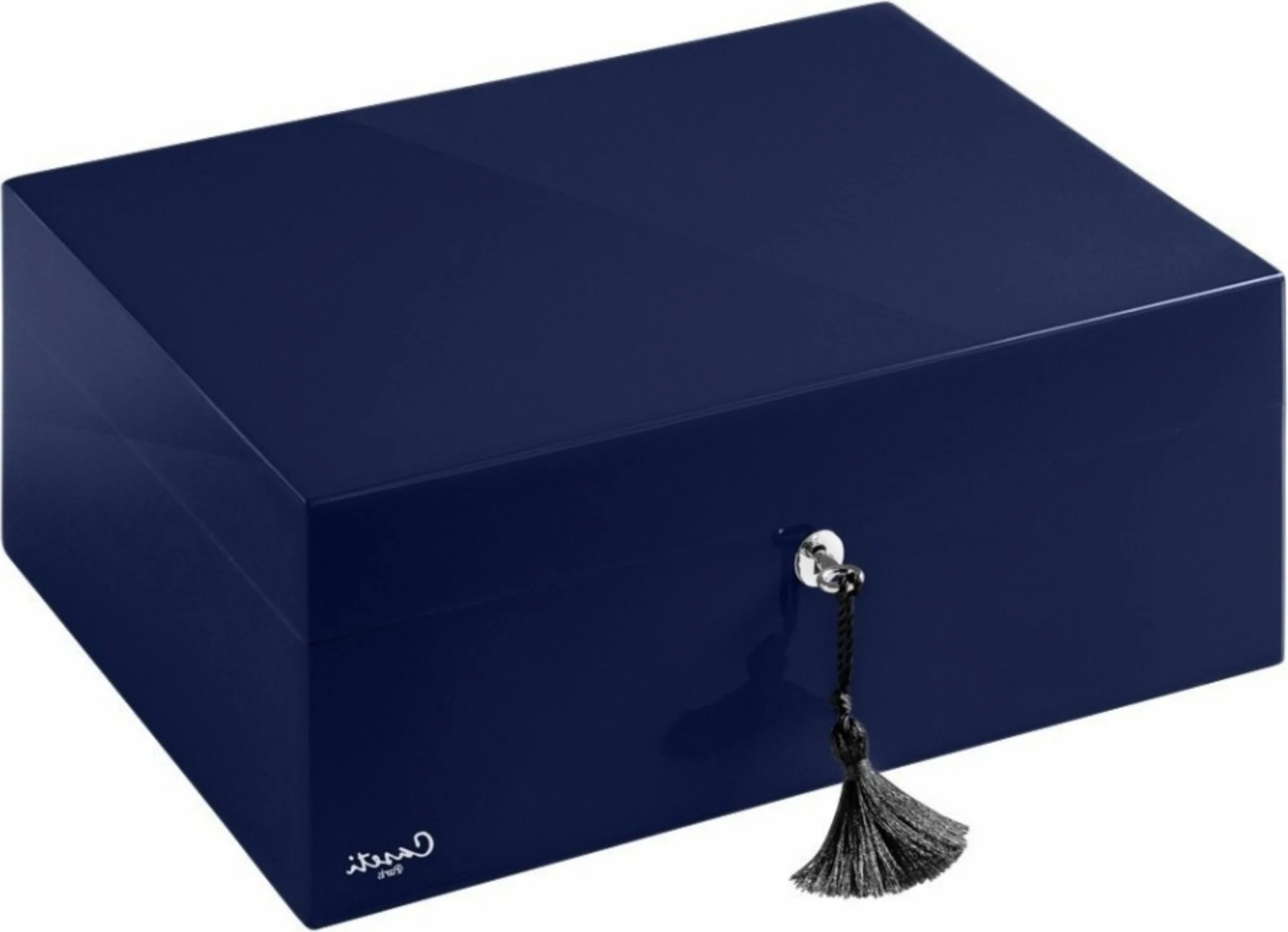 O Caseti Humidor Paris em azul é um umidor sofisticado da marca francesa Caseti que chama a atenção imediatamente com seu acabamento de alto brilho. A série Paris é sinônimo de cores incomuns e se destaca claramente dos umidores clássicos, frequentemente vistos, de madeira folheada.