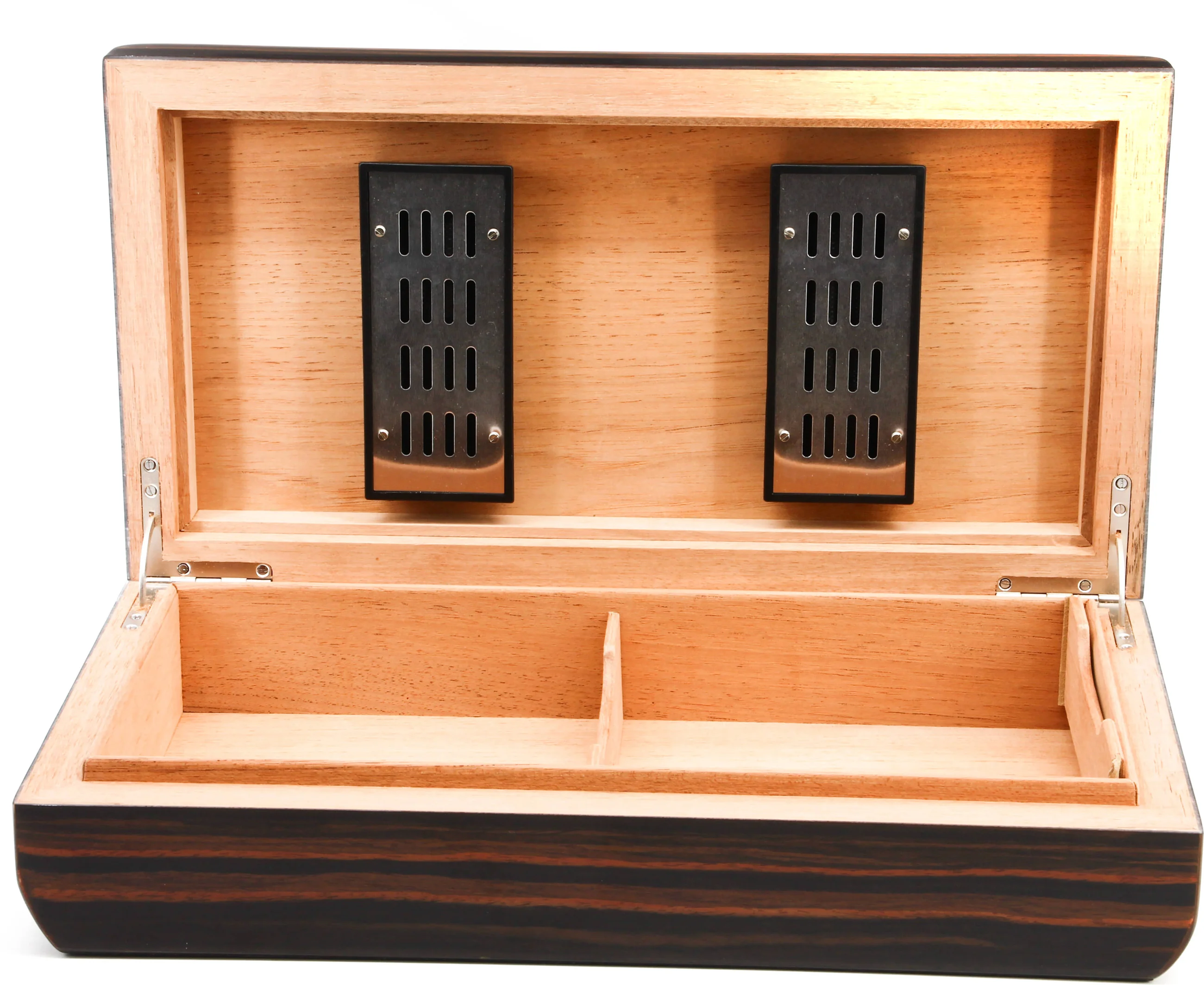 Terminado com uma construção de corpo grosso e dobradiças solidamente construídas, o Pegasus Konvex Humidor Makassar Matte 80 é um humidificador lindamente trabalhado em que você pode confiar para manter seus charutos em excelentes condições e estilo inquestionável por muitos anos. Trate a si mesmo e seus charutos com um humidor Pegasus.