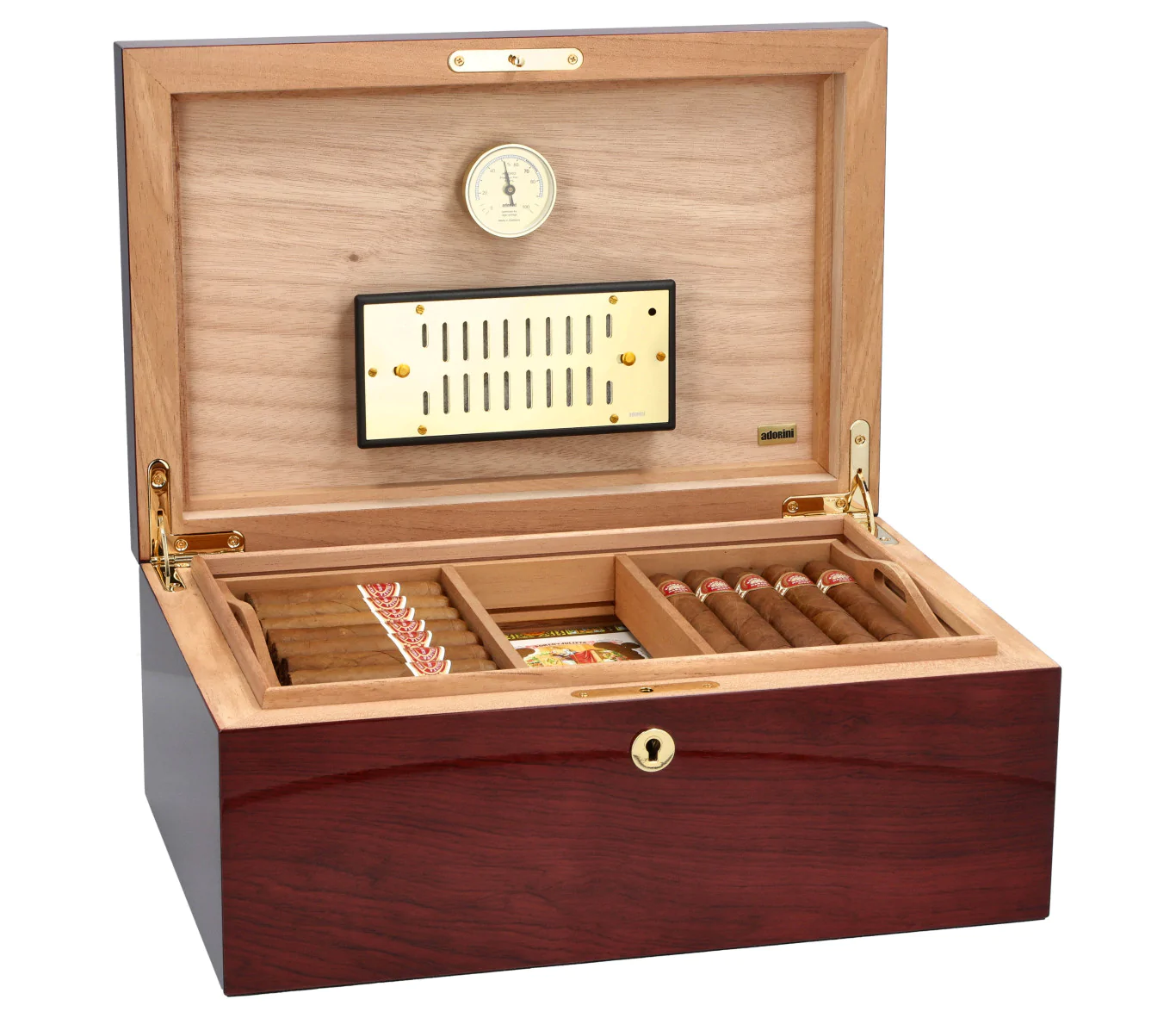 Réguas de ventilação exclusivas ("RibTech") para melhor circulação de ar dentro do humidor. Inovação Adorini protegida