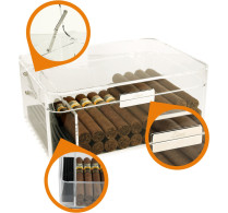 O umidor de acrílico transparente Zino é um campeão de vendas e um exemplo de tudo que coleção Zino tem a oferecer ao entusiasta moderno.